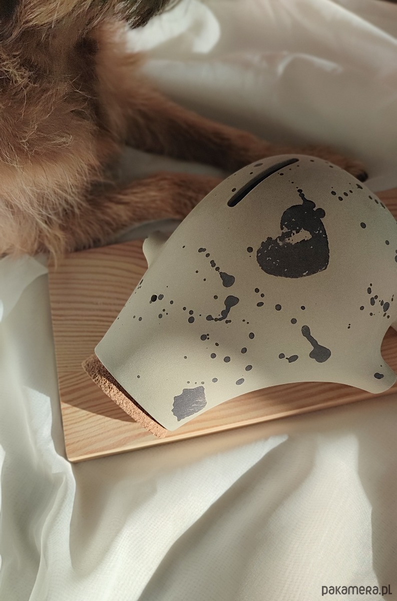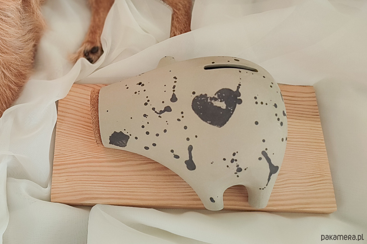 Na górze znajduje się tradycyjny otwór do wrzucania pieniędzy, ale ej, jeśli będziecie trzymać w niej liściki miłosne albo będzie tzw. "słoikiem dumy" na miłe karteczki, to tylko lepiej.