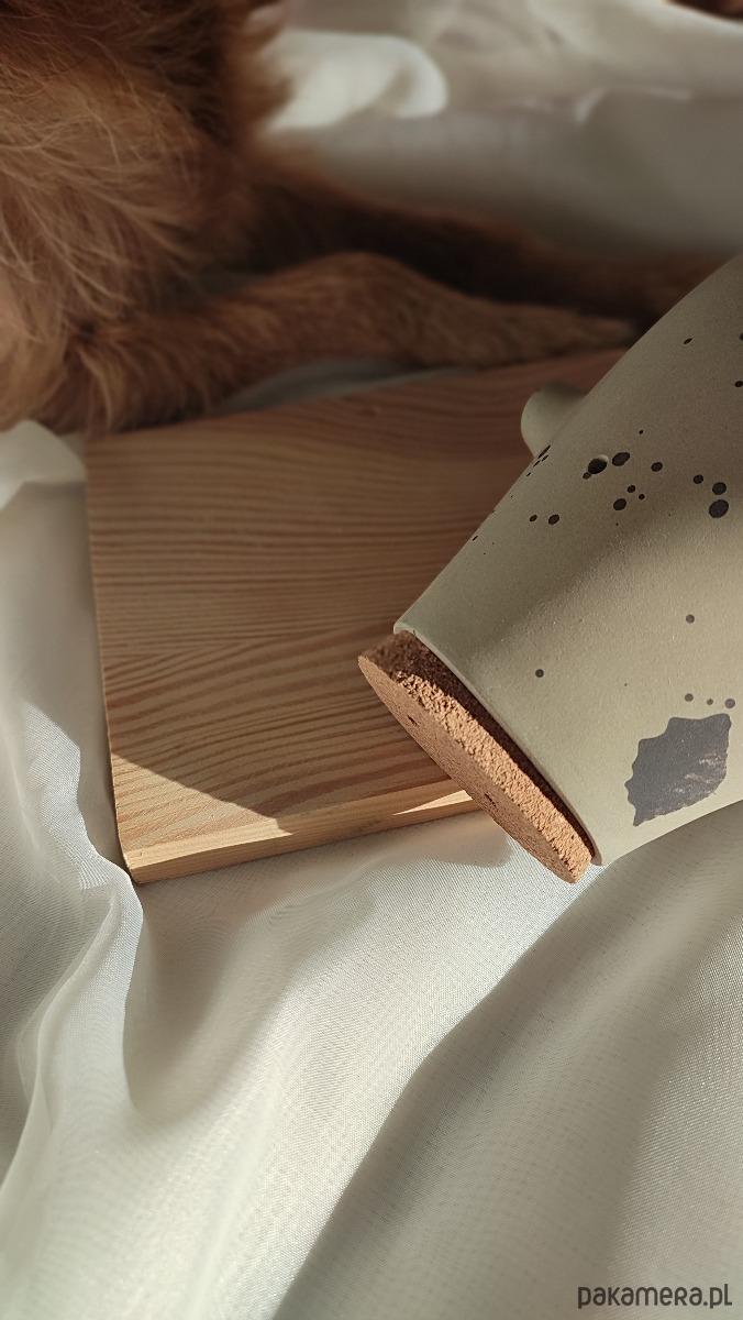 materiał: polerowana kamionka, czyli ceramika i korek naturalny