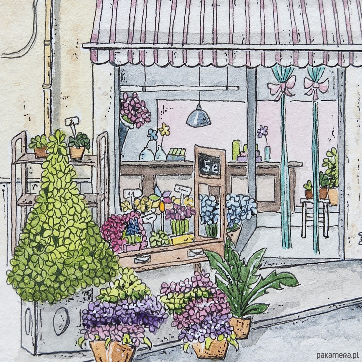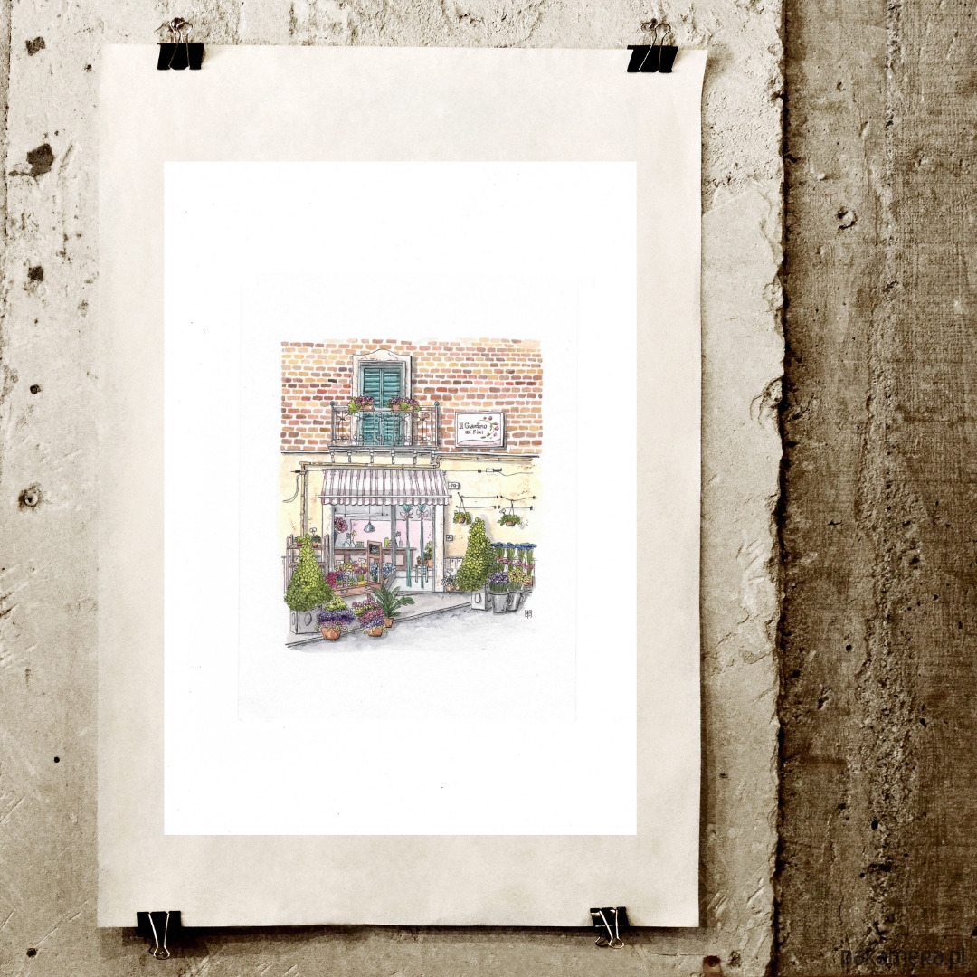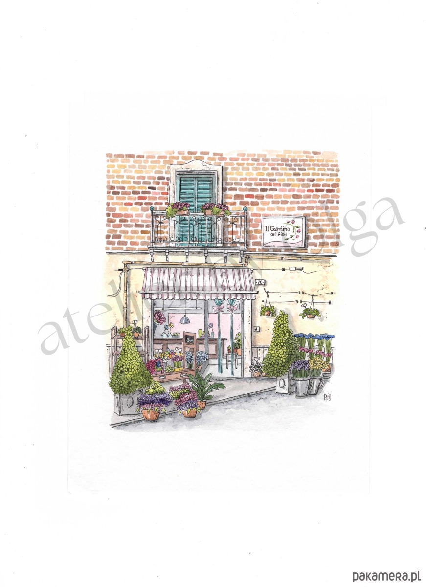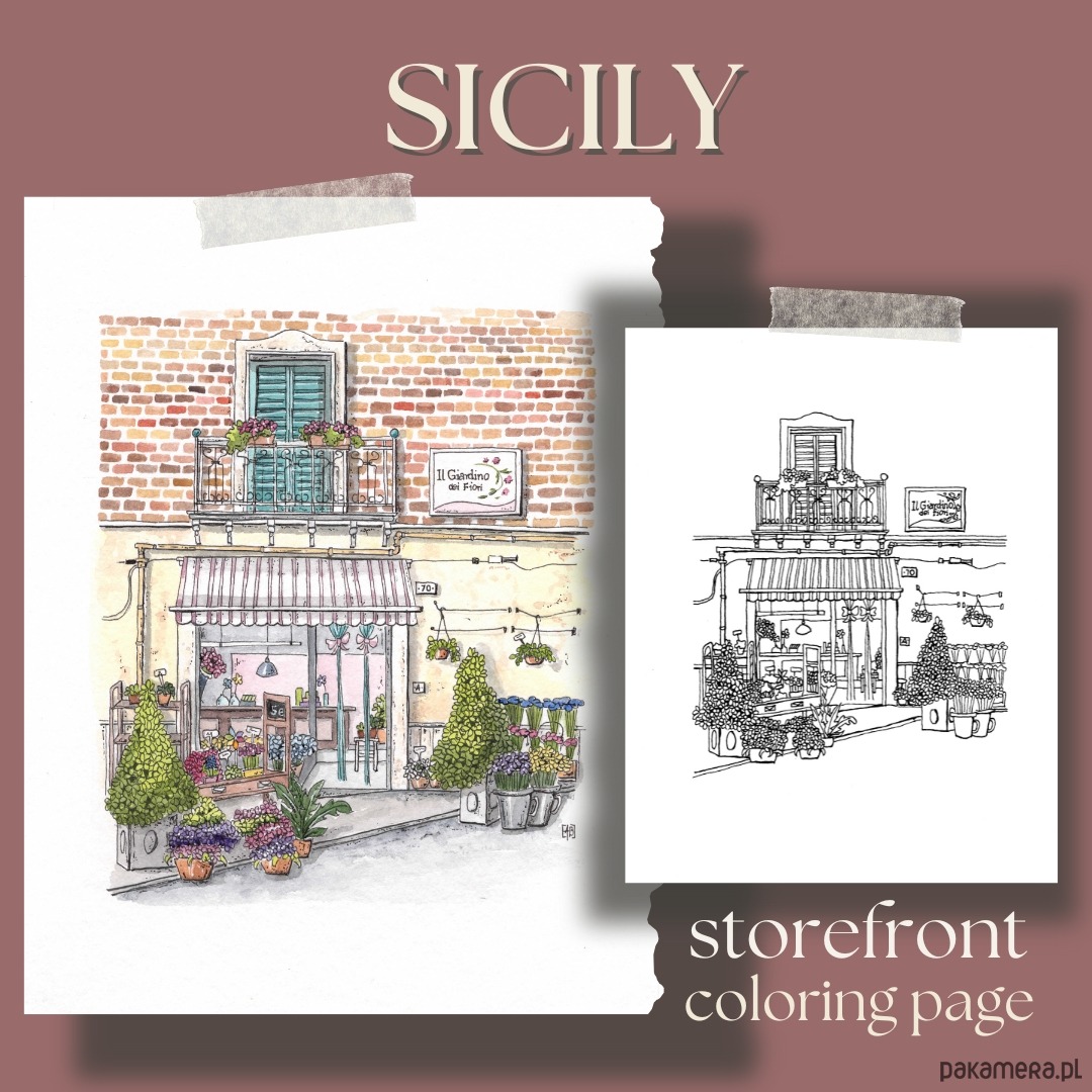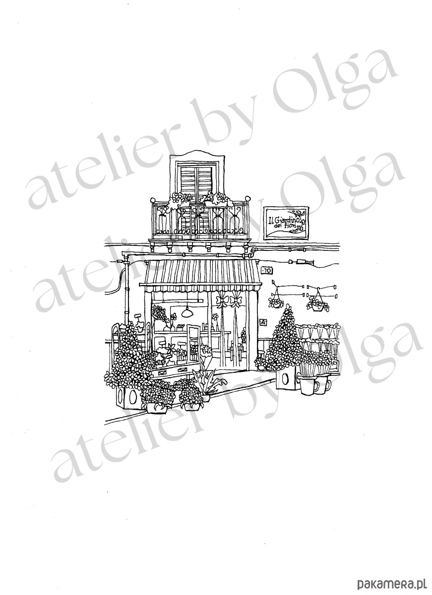 Sycylia, urocza kwiaciarnia , kolorowanka dla dorosłych, do wydruku