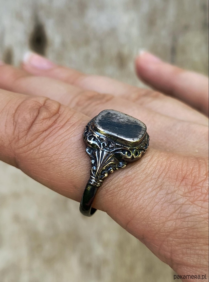 Pierścień - sygnet Mirror jest surowy, oksydowany i niezwykle klimatyczny.