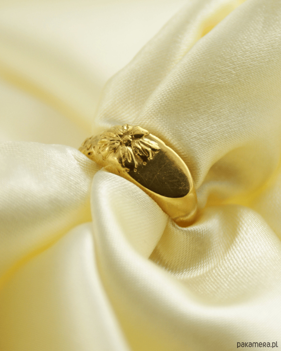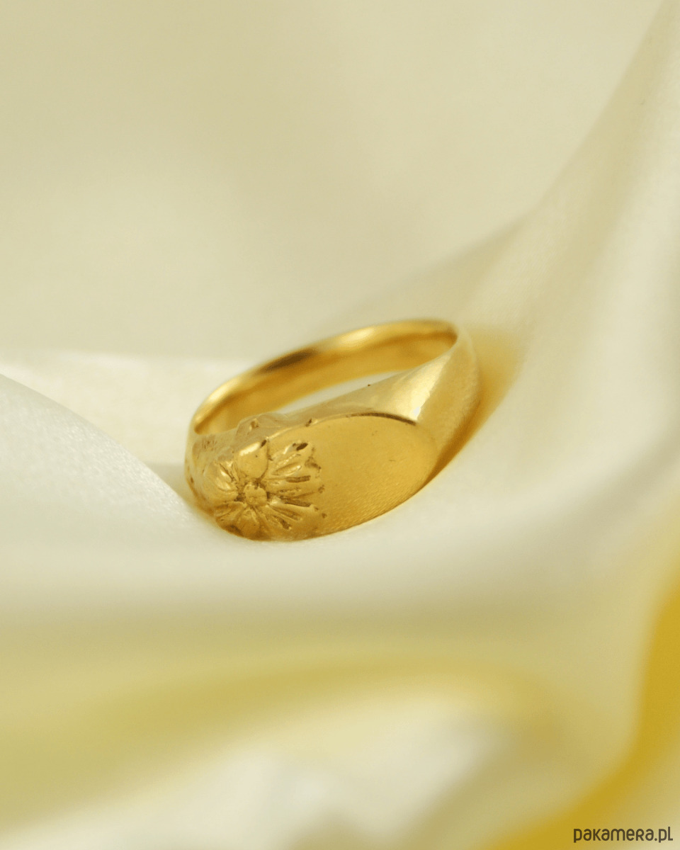 Relief – rzeźbiarski sygnet z motywem kwiatu