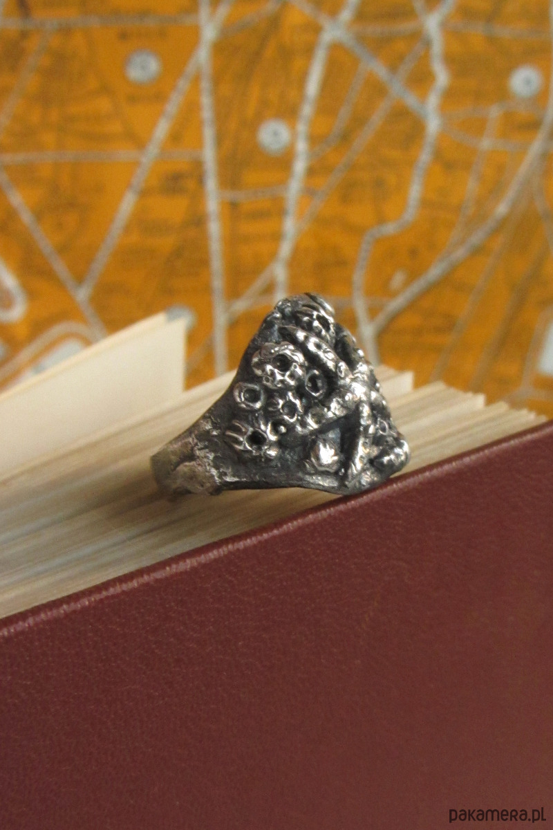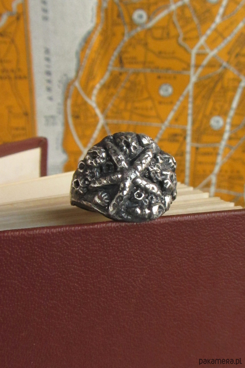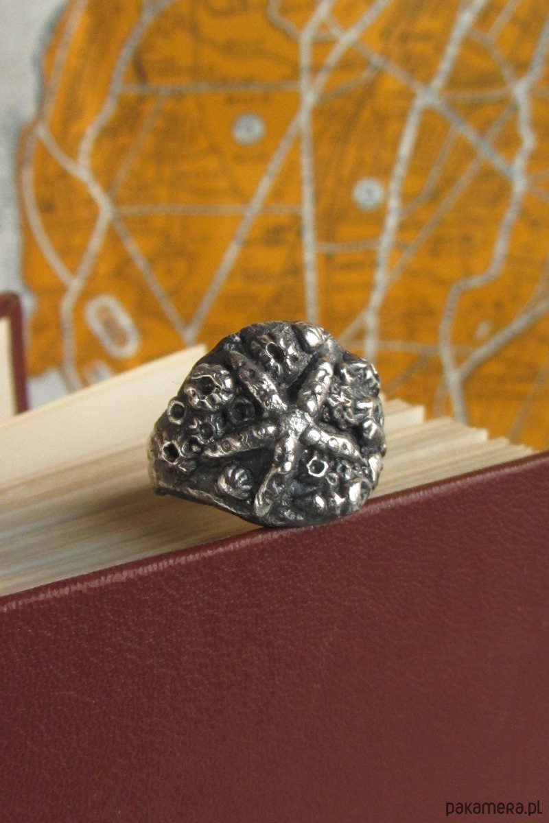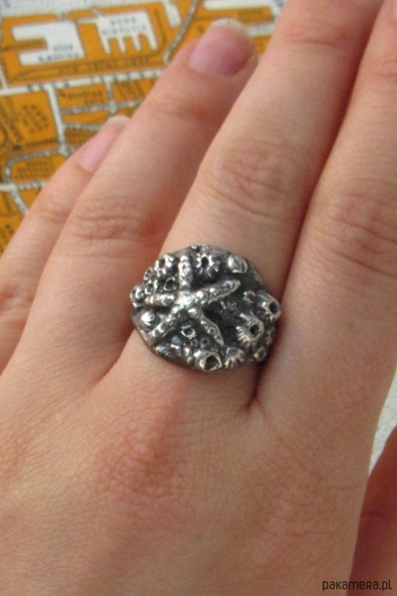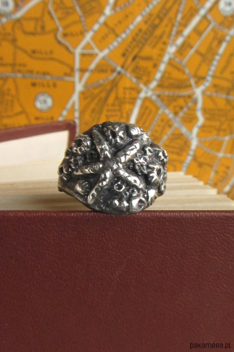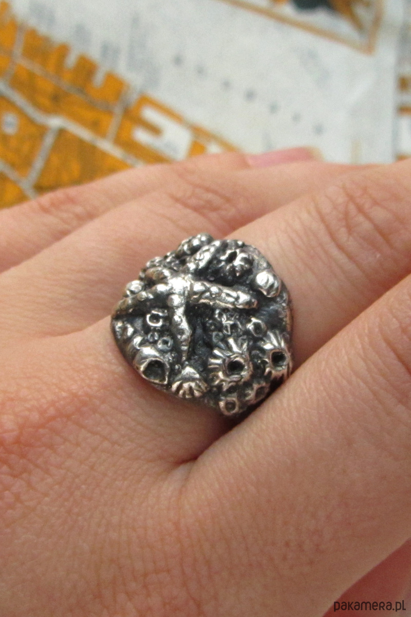 Ręcznie rzeźbiony sygnet przedstawiający dno morza. Znajdują się na nim pąkle, muszle oraz okazała rozgwiazda. Został wykonany w całości ze srebra metodą wosku traconego w krakowskiej pracowni.