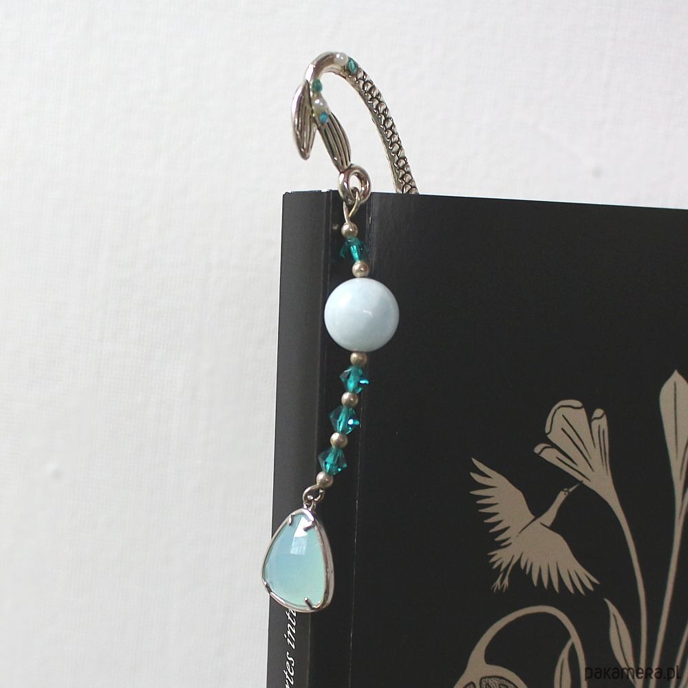 Elegancka i unikatowa obustronna mini zakładka do książki z akwamarynem. Ręcznie i obustronnie zdobiona cyrkonikami.