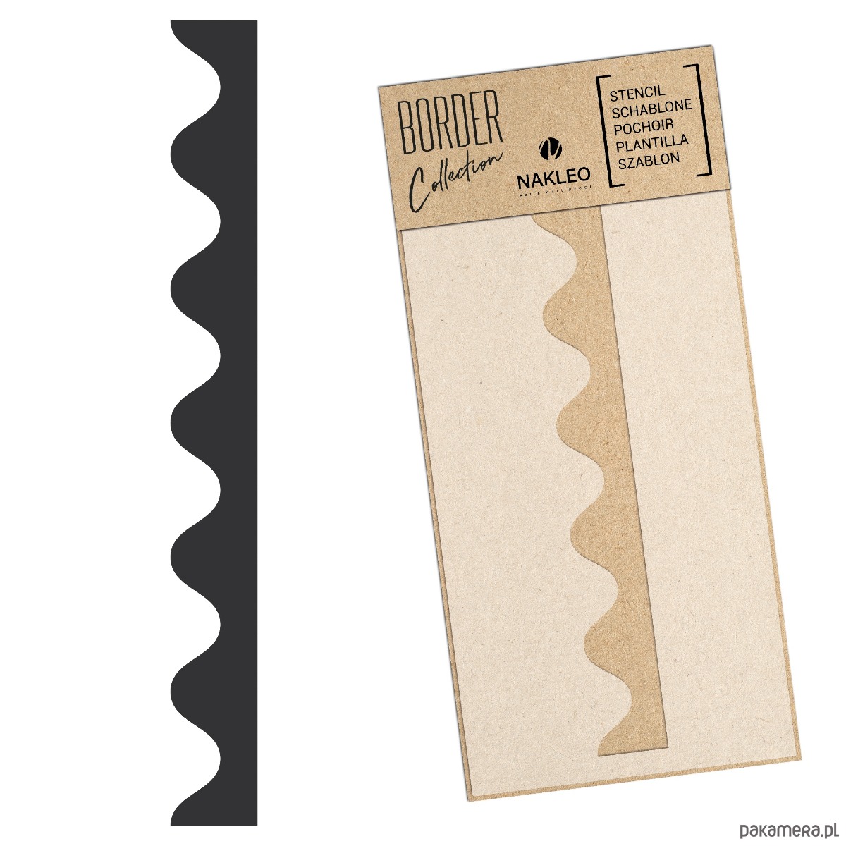 Nakleo Border Collection to seria szablonów malarskich inspirowana dekoracyjnymi bordiurami. Wzory dostępne są w dwóch rozmiarach: 21x45cm oraz 45x95cm, co pozwala na dostosowanie produktów do indywidualnych potrzeb każdego dekoratora. Trwała, półprzeźroczysta folia polipropylenowa umożliwia wielokrotne użycie szablonu, dzięki czemu niewielkim kosztem można odmienić dowolne pomieszczenie. Nowoczesne, ale i ponadczasowe dekoracje doskonale sprawdzą się jako ozdoba rozmaitych elementów wyposażenia domu.