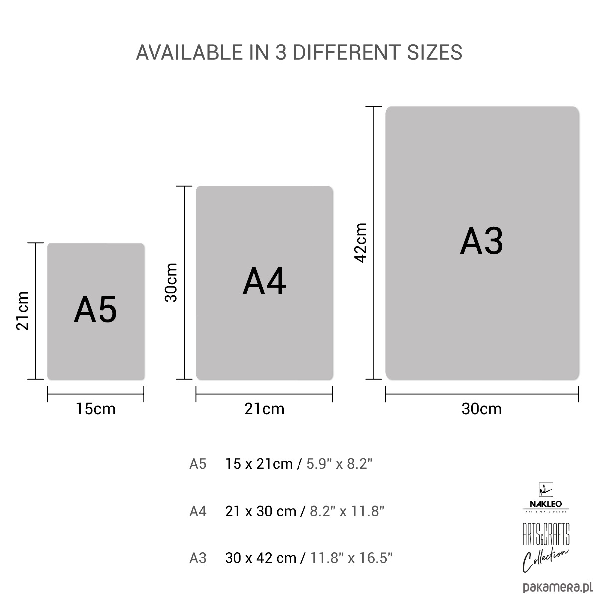 różne rozmiary: każdy wzór dostępny jest w uniwersalnych i poręcznych trzech rozmiarach A5, A4 i A3