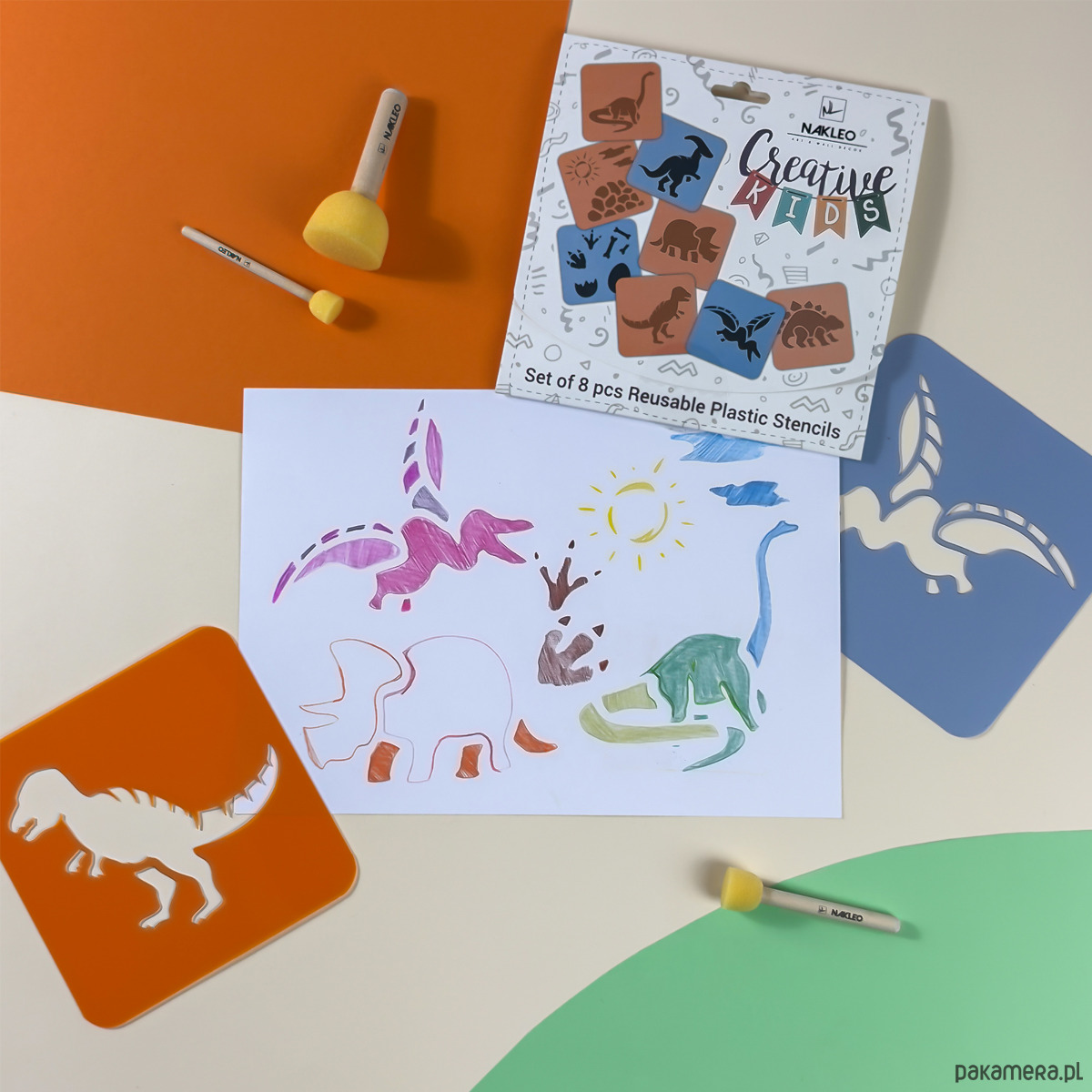 Nakleo Creative Kids to seria szablonów do rysowania stworzonych po to, aby pomóc dzieciom rozwijać talent malarski. Wytrzymałe, elastyczne i kolorowe, wykonane z bezpiecznego dla dzieci tworzywa sztucznego przetrwają wiele godzin dziecięcych zabaw. Każdy zestaw składa się z 8 arkuszy wielokrotnego użytku o wymiarach 15x15cm. Z pomocą naszych produktów Twoje dziecko rozwinie nie tylko swoją wyobraźnię, ale także zdolności manualne.