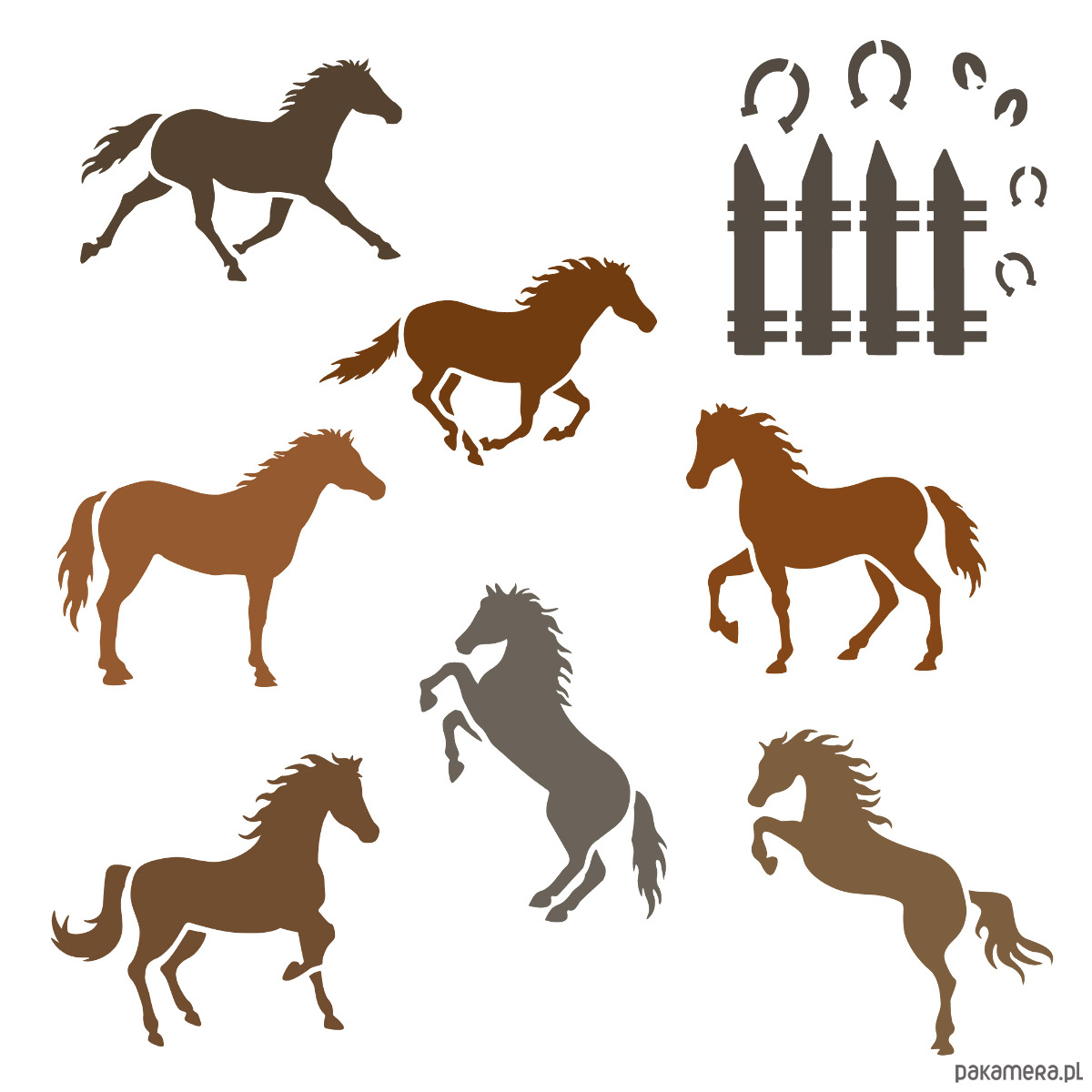 Szablony do rysowania dla dzieci (8 szt.) // KONIE