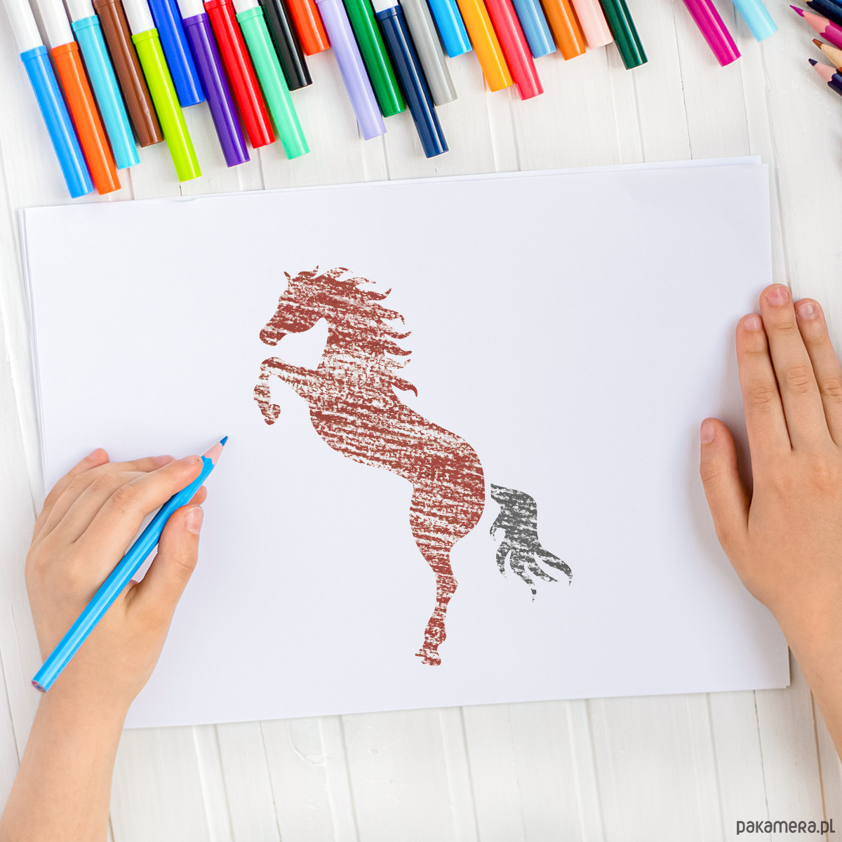Galopujący, cwałujący a może kłusujący koń? Każdy z nich może stać się towarzyszem przygód najmłodszych. Podkowa z pewnością przyniesie im szczęście. A może w Twoim dziecku obudzi się pasja do jeździectwa