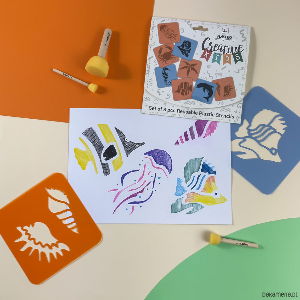 Szablony do rysowania „Morskie” z serii Nakleo Creative Kids pomogą Twojemu dziecku tworzyć piękne obrazki. Osiem pomarańczowych i niebieskich arkuszy z różnymi wzorami pobudzi wyobraźnię najmłodszych i przygotuje rękę do nauki pisania. Kreatywna zabawa z naszymi produktami może stać się łatwym i przyjemnym treningiem małej motoryki maluchów. Wszystkich szablonów można używać wielokrotnie, dzięki czemu staną się one idealną rozrywką na wiele długich godzin. Malowanie farbami, mazakami czy kredkami nie będzie już problemem. Bogata gama tematyczna sprawi, że każdy znajdzie coś dla siebie, zarówno przyszły astronauta, jak i mała księżniczka. Gwarantujemy szeroki uśmiech i dumę z własnoręcznie wykonanych rysunków!