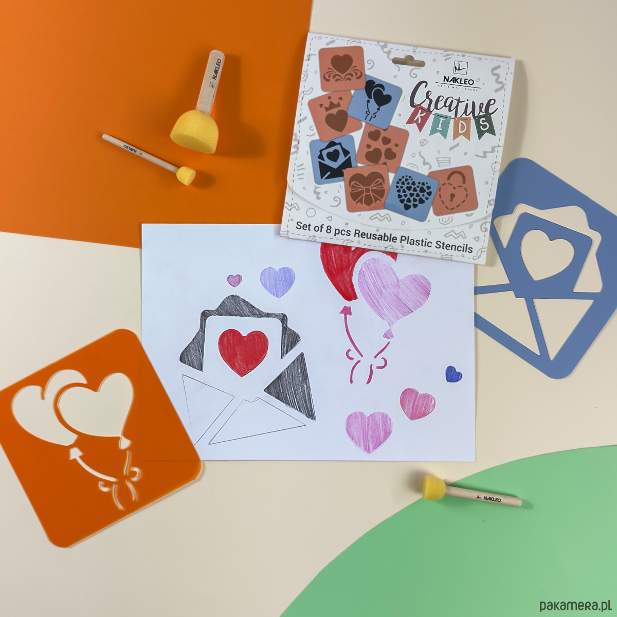 Szablony do rysowania „Walentynki - Miłość” z serii Nakleo Creative Kids pomogą Twojemu dziecku tworzyć piękne obrazki. Osiem pomarańczowych i niebieskich arkuszy z różnymi wzorami pobudzi wyobraźnię najmłodszych i przygotuje rękę do nauki pisania. Kreatywna zabawa z naszymi produktami może stać się łatwym i przyjemnym treningiem małej motoryki maluchów. Wszystkich szablonów można używać wielokrotnie, dzięki czemu staną się one idealną rozrywką na wiele długich godzin. Malowanie farbami, mazakami czy kredkami nie będzie już problemem. Bogata gama tematyczna sprawi, że każdy znajdzie coś dla siebie, zarówno przyszły astronauta, jak i mała księżniczka. Gwarantujemy szeroki uśmiech i dumę z własnoręcznie wykonanych rysunków!