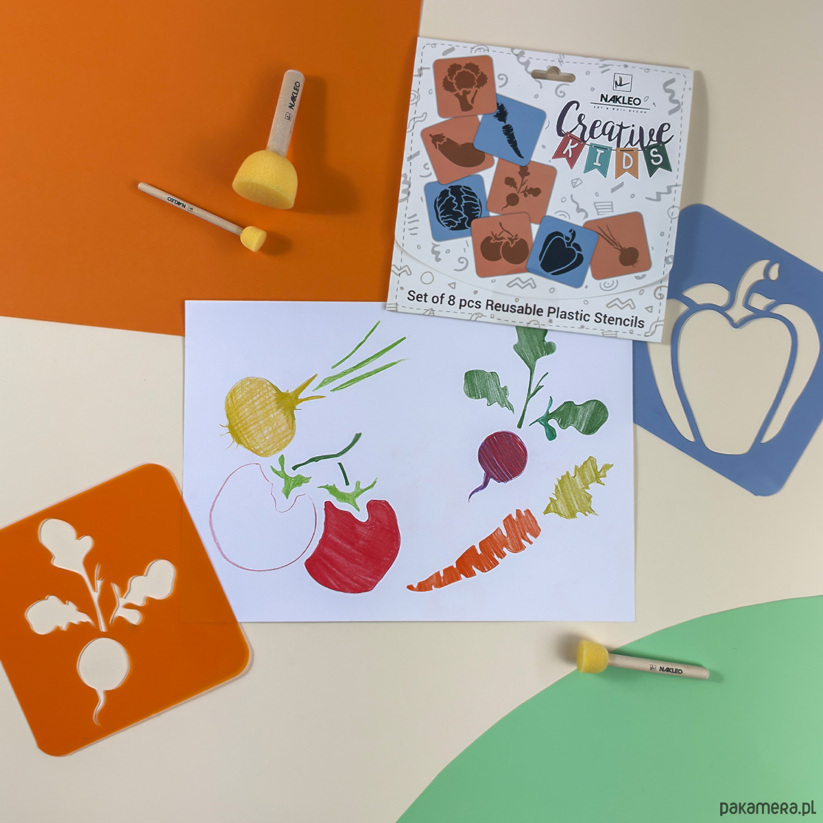 Szablony do rysowania „Warzywa” z serii Nakleo Creative Kids pomogą Twojemu dziecku tworzyć piękne obrazki. Osiem pomarańczowych i niebieskich arkuszy z różnymi wzorami pobudzi wyobraźnię najmłodszych i przygotuje rękę do nauki pisania. Kreatywna zabawa z naszymi produktami może stać się łatwym i przyjemnym treningiem małej motoryki maluchów. Wszystkich szablonów można używać wielokrotnie, dzięki czemu staną się one idealną rozrywką na wiele długich godzin. Malowanie farbami, mazakami czy kredkami nie będzie już problemem. Bogata gama tematyczna sprawi, że każdy znajdzie coś dla siebie, zarówno przyszły astronauta, jak i mała księżniczka. Gwarantujemy szeroki uśmiech i dumę z własnoręcznie wykonanych rysunków!