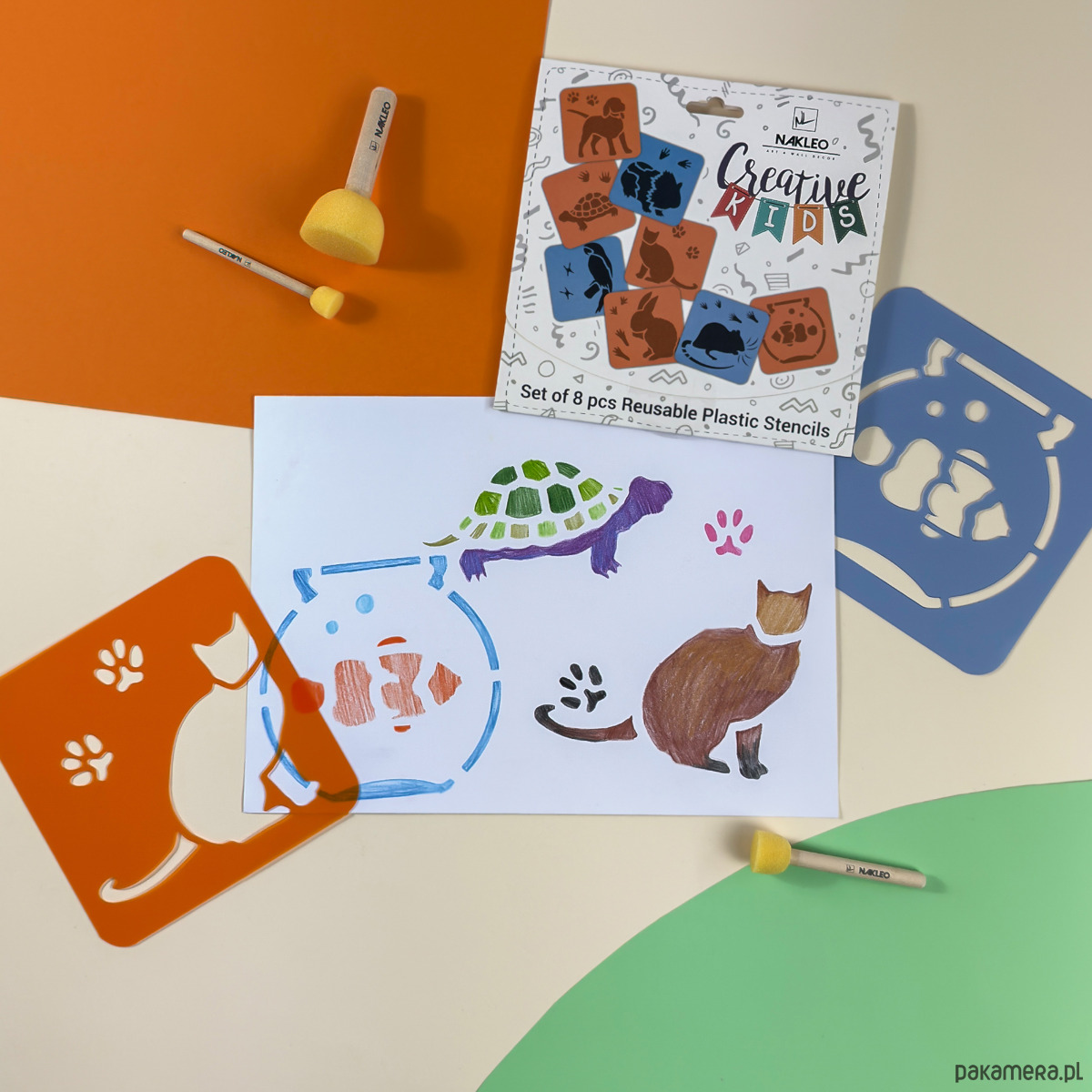 Nakleo Creative Kids to seria szablonów do rysowania stworzonych po to, aby pomóc dzieciom rozwijać talent malarski. Wytrzymałe, elastyczne i kolorowe, wykonane z bezpiecznego dla dzieci tworzywa sztucznego przetrwają wiele godzin dziecięcych zabaw. Każdy zestaw składa się z 8 arkuszy wielokrotnego użytku o wymiarach 15x15cm. Z pomocą naszych produktów Twoje dziecko rozwinie nie tylko swoją wyobraźnię, ale także zdolności manualne.