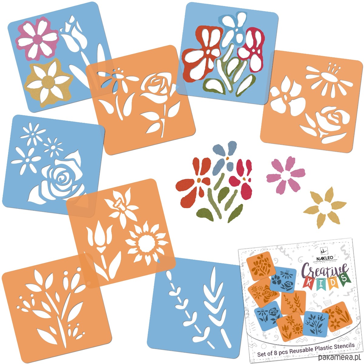 Kolekcja Nakleo Creative Kids to seria szablonów do rysowania stworzonych po to, aby pomóc dzieciom rozwijać talent artystyczny. Wytrzymałe, elastyczne i kolorowe, wykonane z bezpiecznego dla dzieci plastiku przetrwają wiele godzin dziecięcych zabaw. Każdy zestaw składa się z 8 arkuszy wielokrotnego użytku o wymiarach 15×15 cm. Z pomocą naszych produktów Twoje dziecko rozwinie nie tylko swoją wyobraźnię, ale także kreatywność.