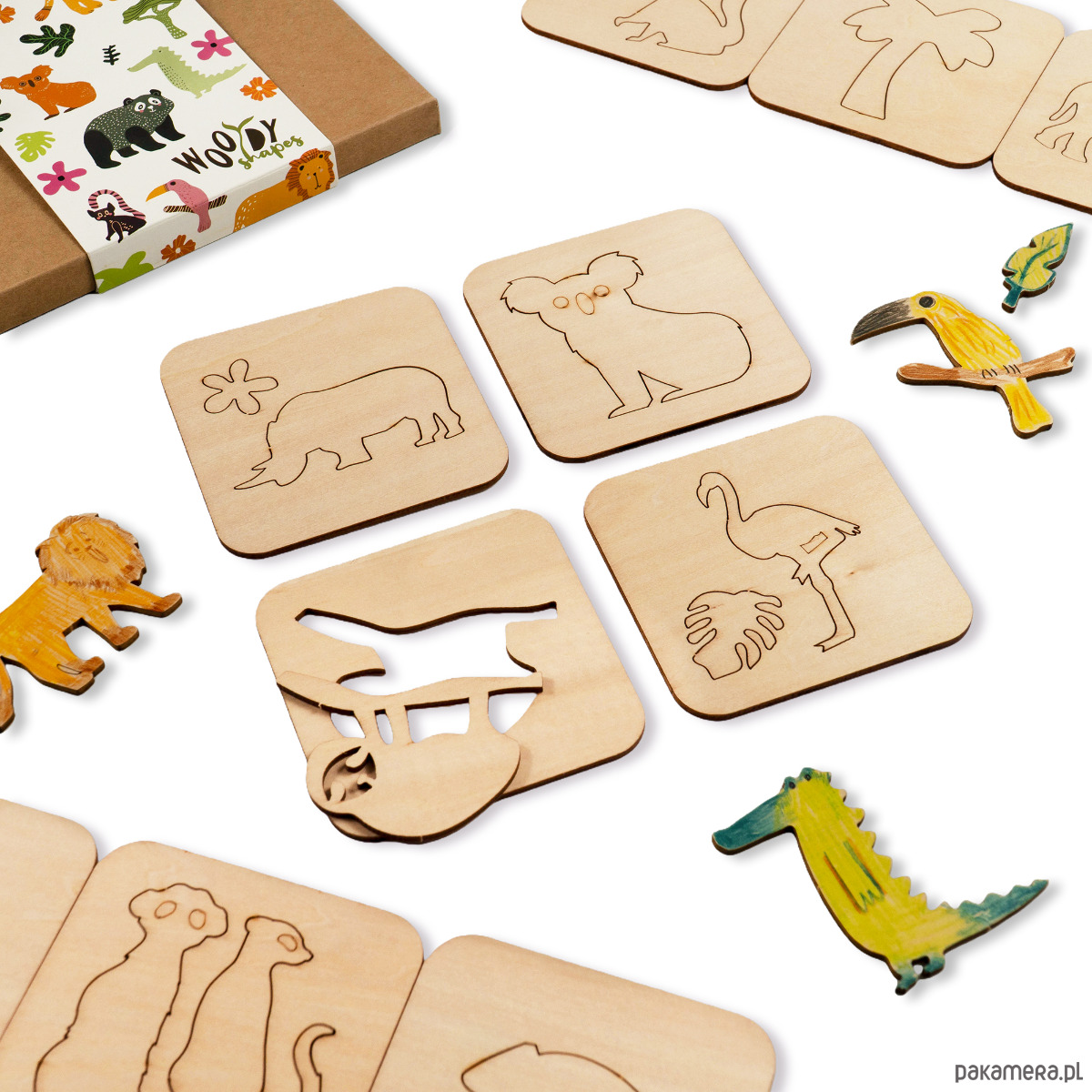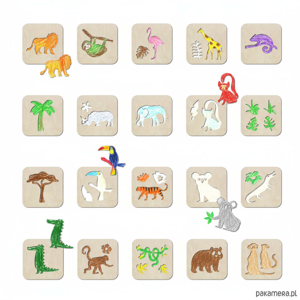 Szablony drewniane dla dzieci // Zestaw 20 szt. // DŻUNGLA I SAWANNA