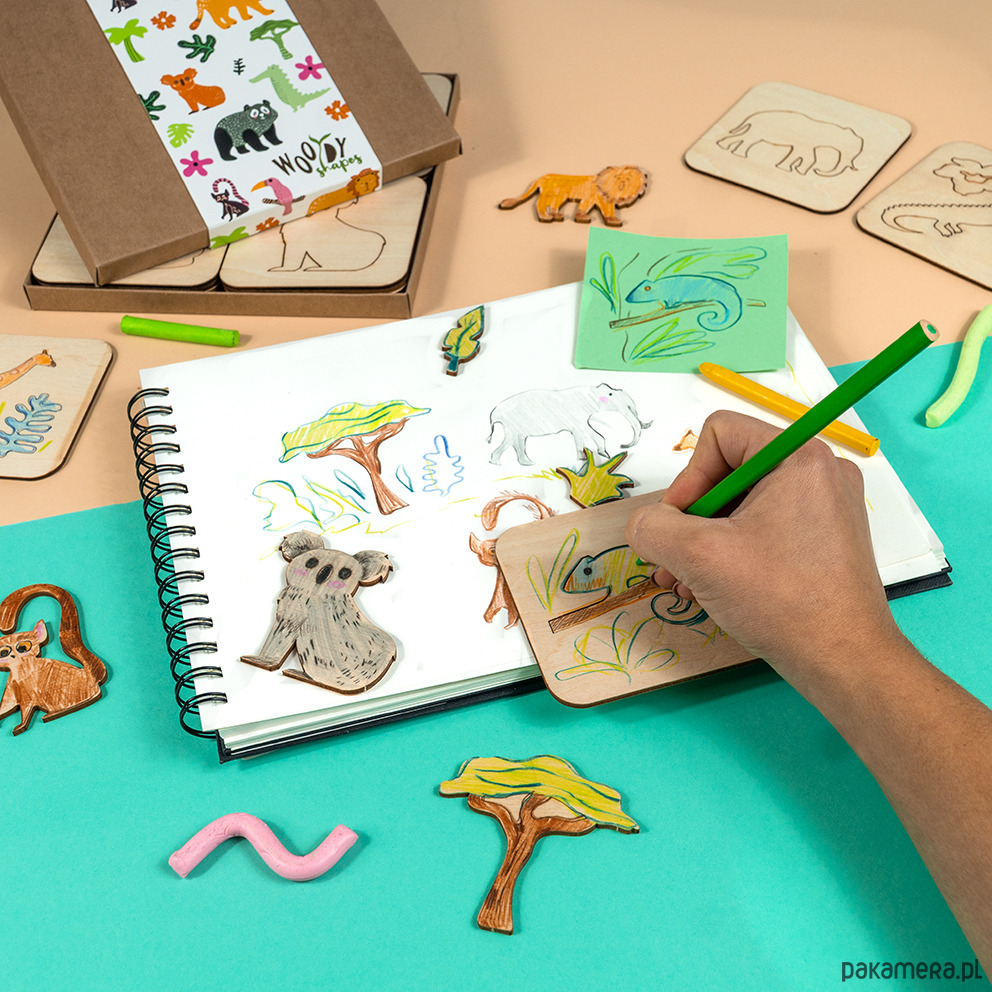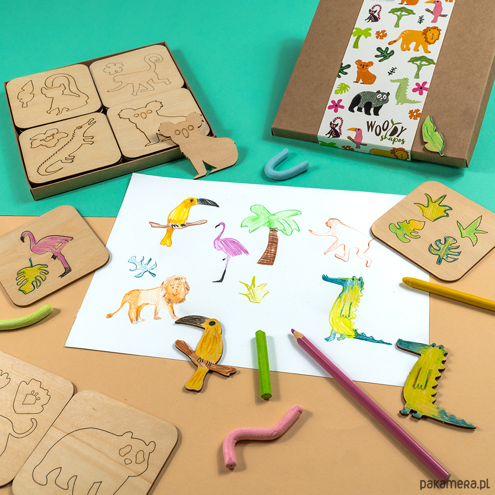 Wyraźne kształty ułatwiają odrysowywanie i malowanie, a tematyka zachęca do rozmów o przyrodzie, siedliskach i różnorodności gatunków. Sprawdź również nasz zestaw szablonów „Zwierzęta Sawanny” z kolekcji Creative Kids, który doskonale uzupełni drewniane szablony Woody Shapes i zabierze dzieci w ekscytującą podróż po tropikalnym świecie pełnym dzikich zwierząt i barwnych roślin.