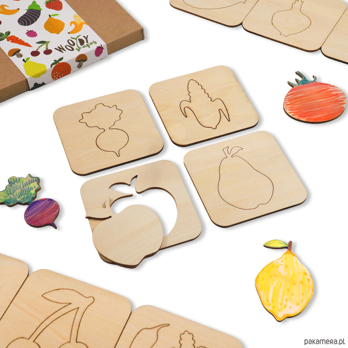 Szablony drewniane dla dzieci // Zestaw 20 szt. // OWOCE I WARZYWA