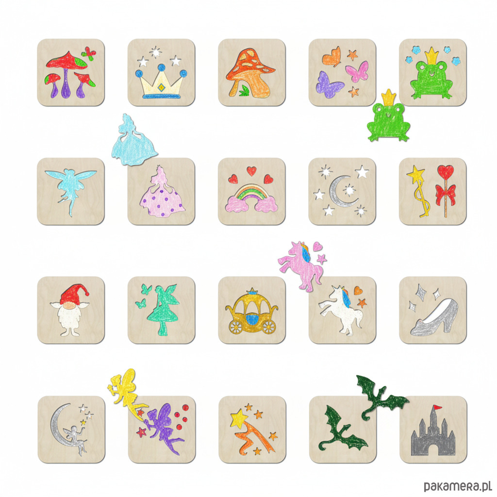 Szablony drewniane dla dzieci // Zestaw 20 szt. // WRÓŻKI I MAGIA