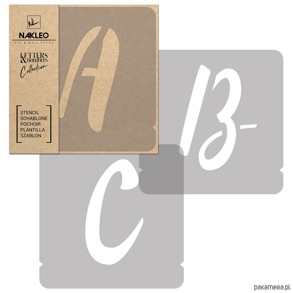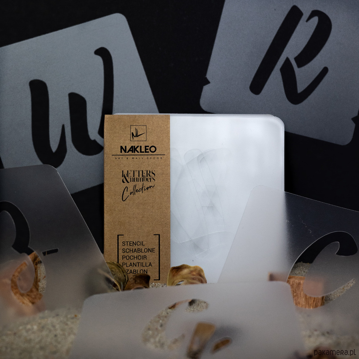 Szablony malarskie wielokrotnego użytku z kolekcji Nakleo Letters & Numbers Collection wykonane są z trwałego i elastycznego plastiku typu polipropylen. Przy odpowiednim użytkowaniu i pielęgnacji mogą być używane przez wiele lat. Każdy zestaw to precyzyjnie zaprojektowane i dobrane 12 pojedyncze arkusze z cyframi i znakami. Komplety dostępne są w 5 rozmiarach czcionek do wyboru: 5 cm, 7 cm, 10 cm, 14 cm i 25 cm. Dzięki kilku krojom pisma, znacznikom pozycjonującym i półprzezroczystemu plastiku tworzenie oznakowania nigdy nie było łatwiejsze.