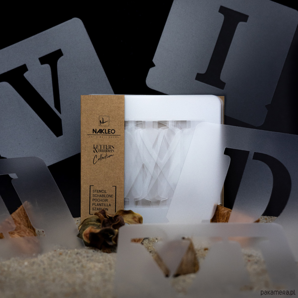Szablony malarskie wielokrotnego użytku z kolekcji Nakleo Letters & Numbers Collection wykonane są z trwałego i elastycznego plastiku typu polipropylen. Przy odpowiednim użytkowaniu i pielęgnacji mogą być używane przez wiele lat. Każdy zestaw to precyzyjnie zaprojektowane i dobrane 12 pojedyncze arkusze z cyframi i znakami. Komplety dostępne są w 5 rozmiarach czcionek do wyboru: 5 cm, 7 cm, 10 cm, 14 cm i 25 cm. Dzięki kilku krojom pisma, znacznikom pozycjonującym i półprzezroczystemu plastiku tworzenie oznakowania nigdy nie było łatwiejsze.