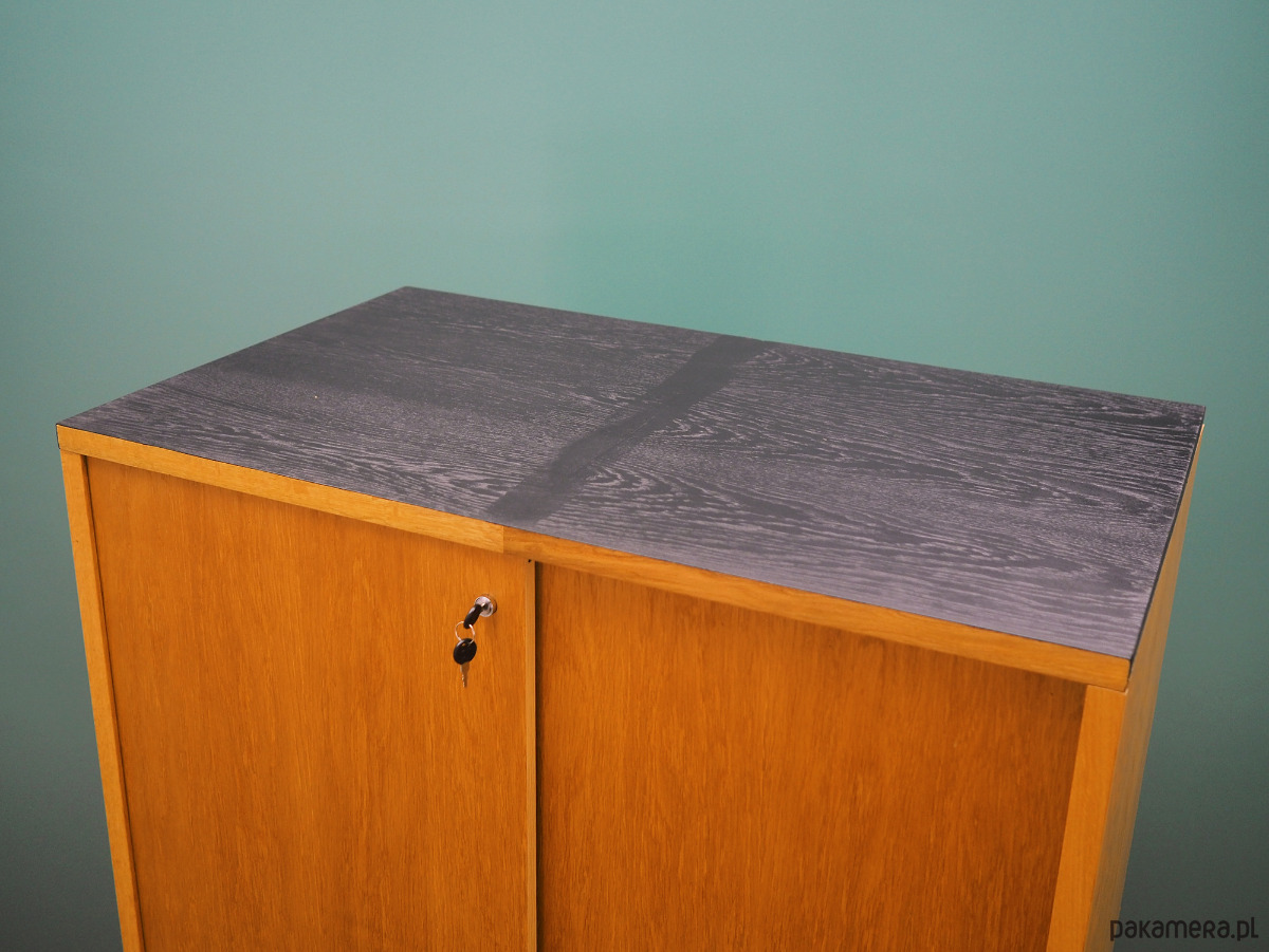 Stan: Powierzchnia szafy po konserwacji. Widoczne drobne zarysowania oraz drobne ubytki, które zostały uzupełnione. Większe ślady użytkowania zawsze przedstawiamy na zdjęciach. Produkt przygotowany bezpośrednio do użytkowania.