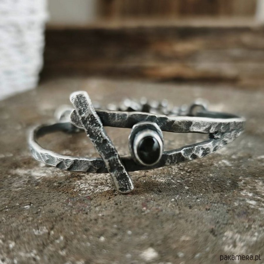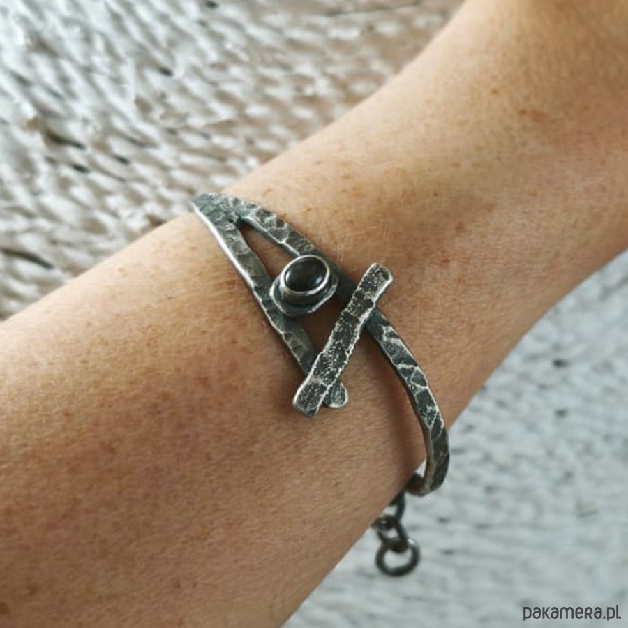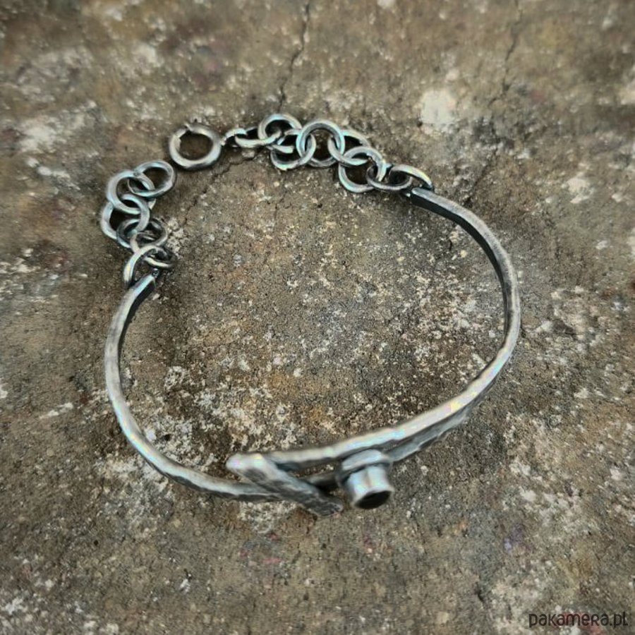 Bransoleta ze srebra i szafiru gwiaździstego. Srebro oksydowane. Wielkość kamienia 0,5 x 0,7 cm. Proszę o podanie obwodu nadgarstka (minimalny 15 cm).