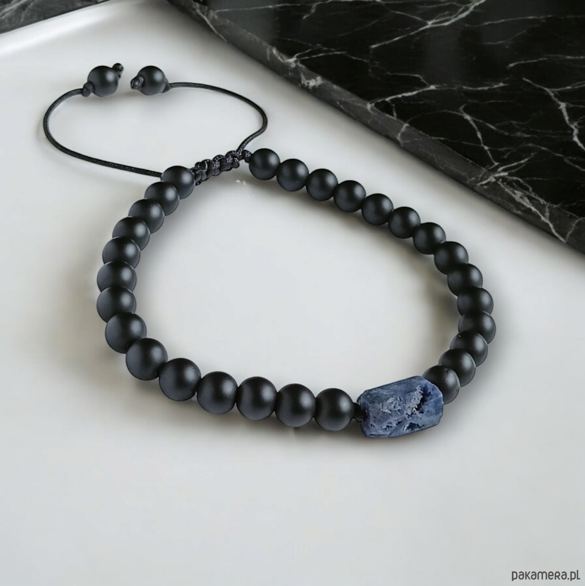 SZAFIR surowy, onyks mat : bransoletka regulowana