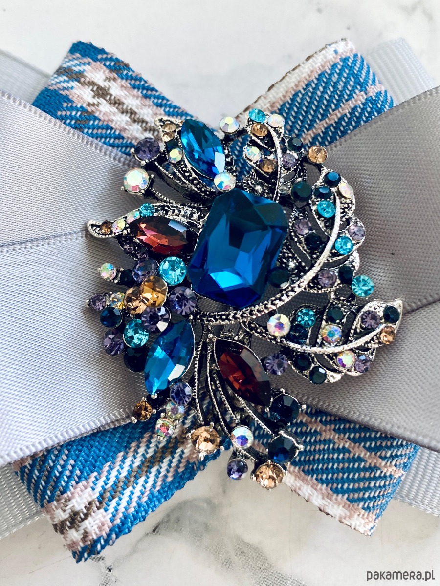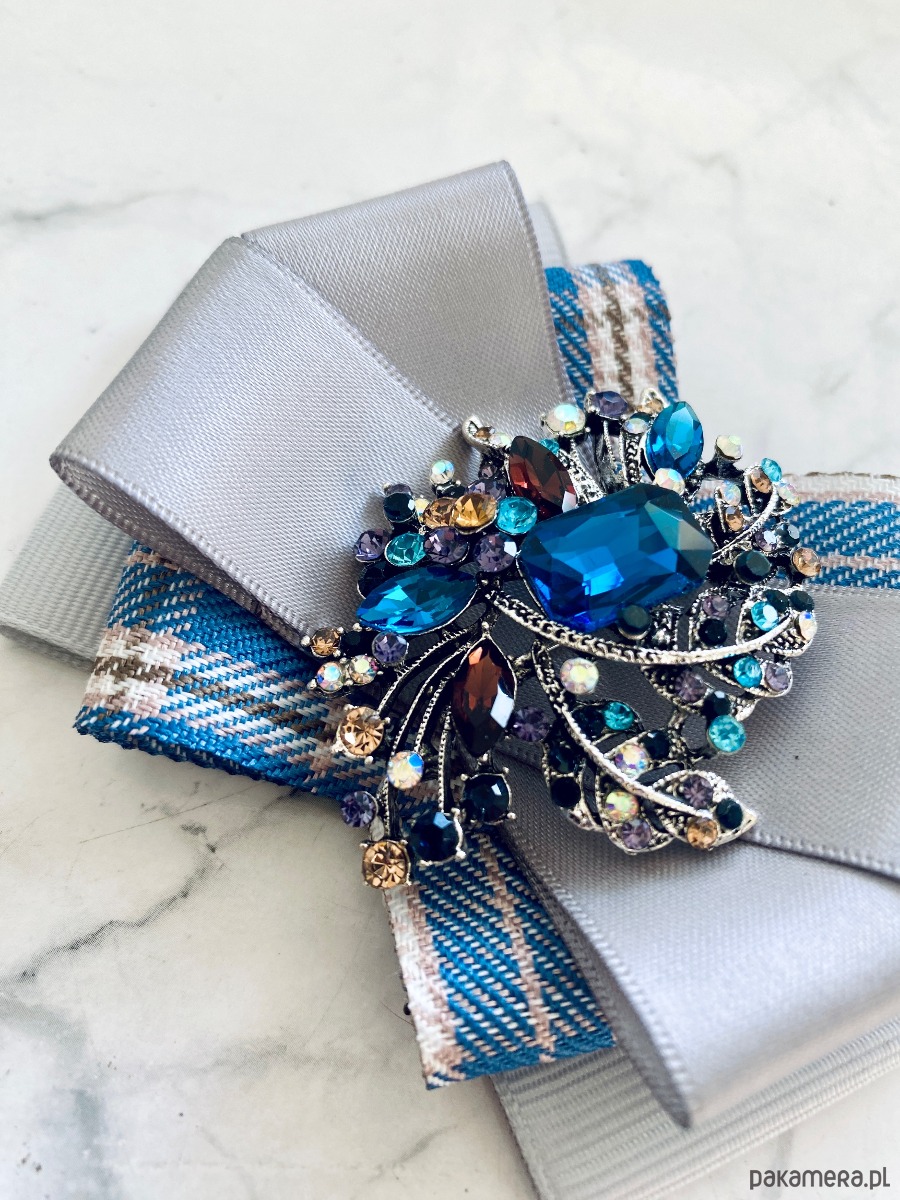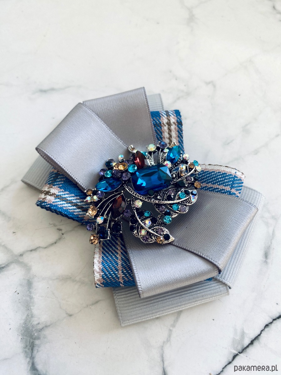 Broszka wykonana z wysokiej jakości taśm i dodatków.
