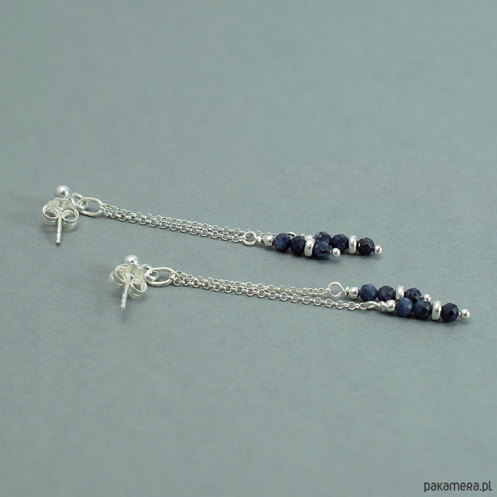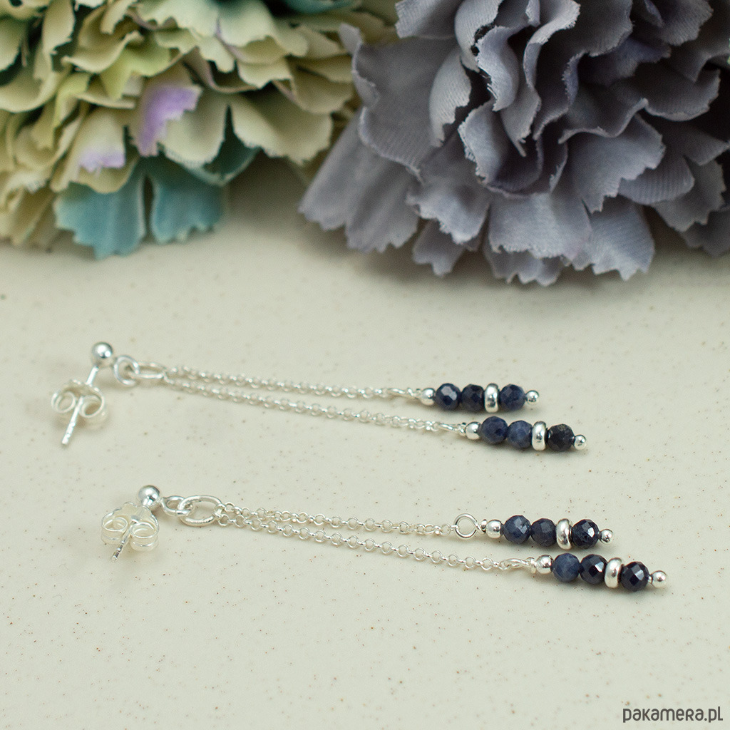 Eleganckie, drobne kolczyki wykonane ze srebra próby 925, z naturalnymi szafirami. Subtelna biżuteria dla osób lubiących ponadczasowe, klasyczne wzornictwo. Lekkie, idealne do noszenia na codzień. Wygodne bigle - sztyfty dobrze trzymają się na uszach. Polecam.