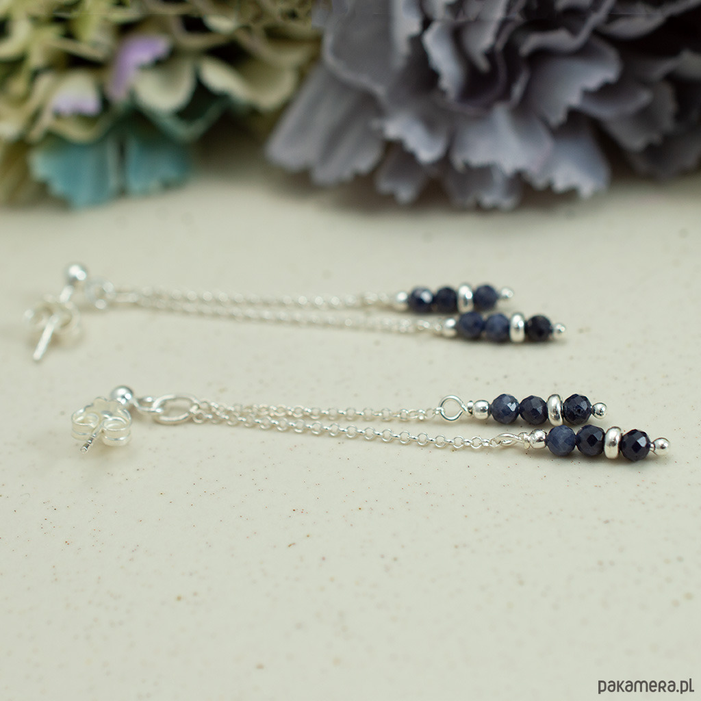 Szafiry i srebro 925 - długie delikatne klasyczne kolczyki