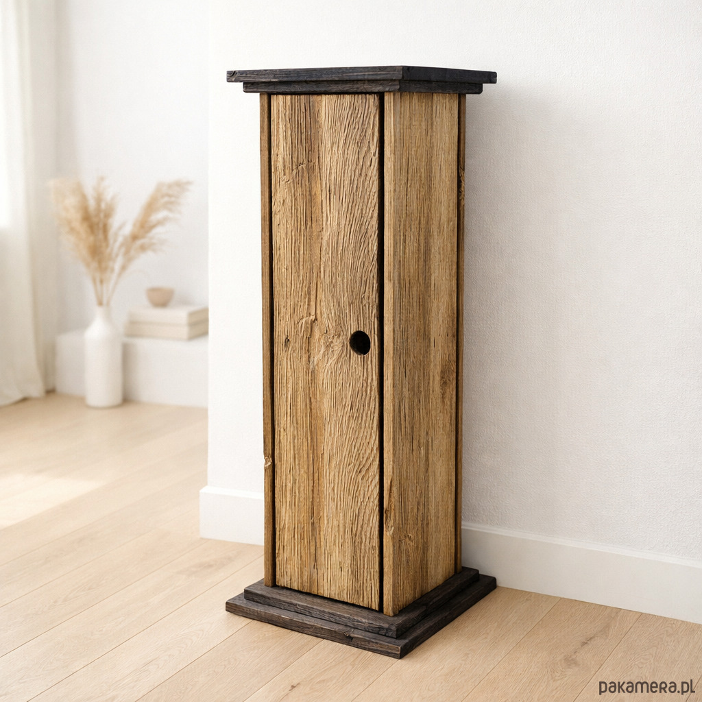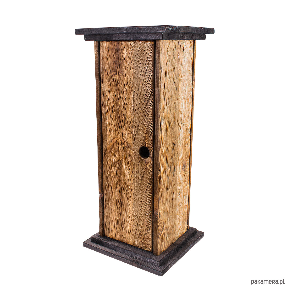 Drewniana szafka John Paddle na 1-4 butelki alkoholu to dekoracyjne i funkcjonalne rozwiązanie dla osób, które cenią stylowe dodatki do wnętrz oraz oryginalne sposoby eksponowania trunków. Smukła, wysoka forma oraz rustykalne wykończenie drewna sprawiają, że produkt świetnie odnajduje się w salonie, jadalni, domowym barku, gabinecie lub strefie degustacyjnej.