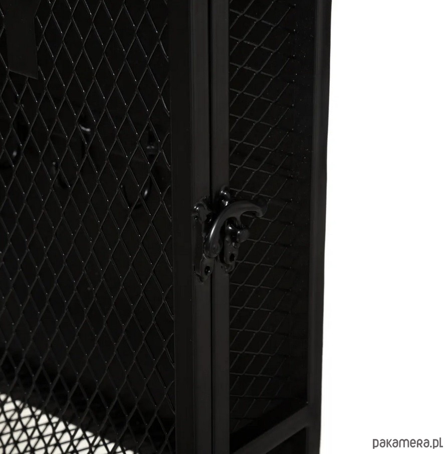 Szafka na klucze w stylu industrialnym. Wykonana w całości z metalu w kolorze czarnym. Drzwiczki to druciana siatka ozdobiona napisem KEY. Posiada dziesięć haczyków.