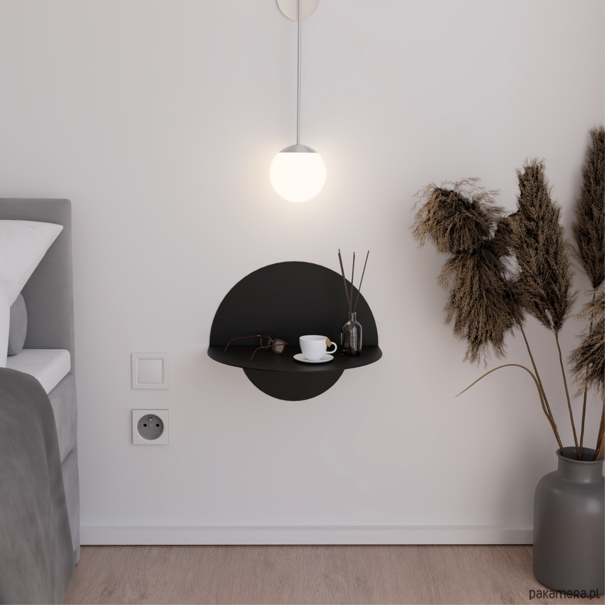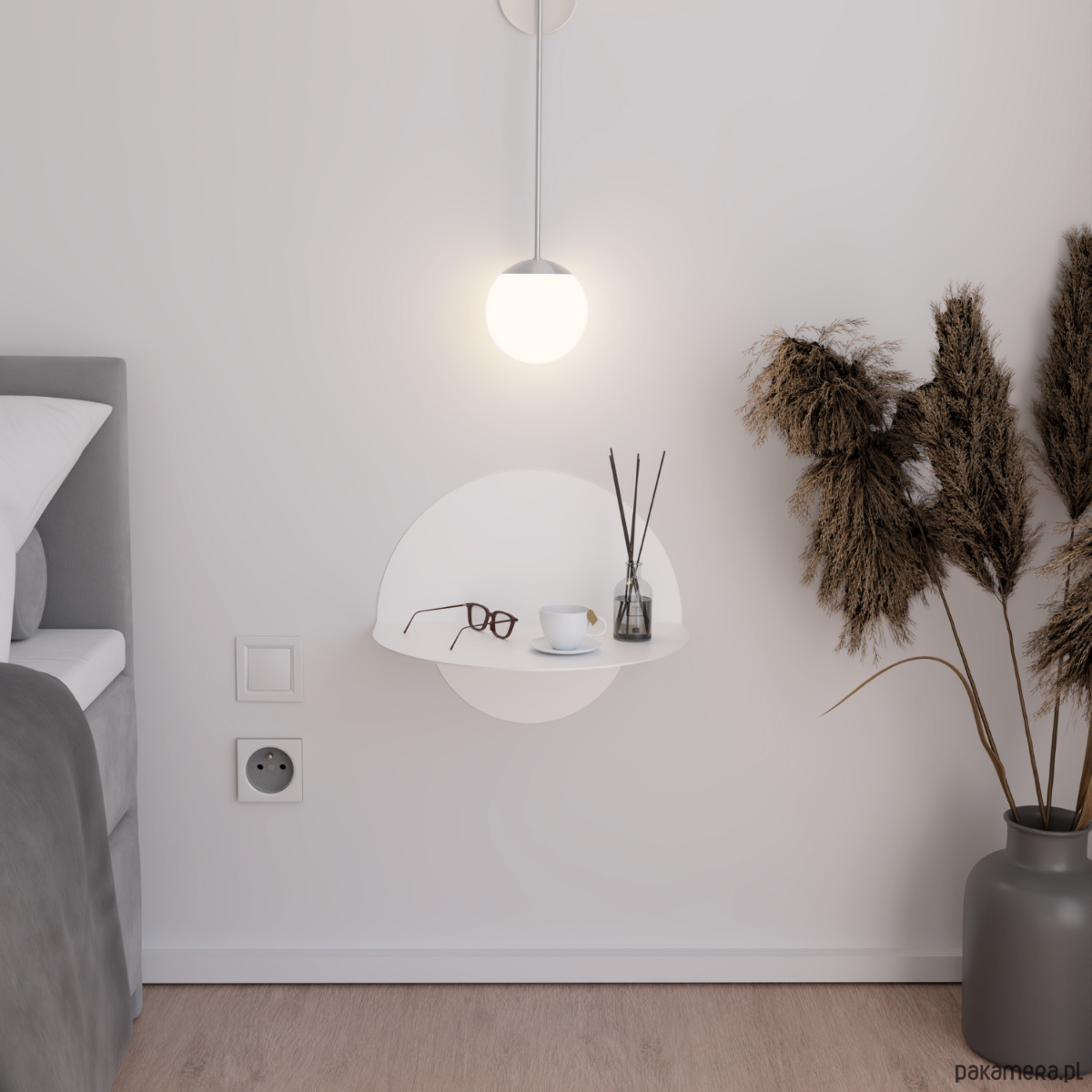 Flutta to designerska szafka nocna o formie koła, która wnosi do sypialni subtelność i nowoczesny akcent. Dzięki montażowi na ścianie wygląda lekko i nie zajmuje miejsca na podłodze. Blat zapewnia przestrzeń na książkę, lampkę czy filiżankę, a stal malowana proszkowo gwarantuje trwałość i odporność na codzienne użytkowanie. Flutta sprawdzi się w różnych aranżacjach – od minimalistycznych po bardziej wyraziste. Standardowo dostępna w bieli i czerni, z możliwością wykonania w innym rozmiarze lub kolorze. Skontaktuj się z nami, a dostosujemy ją do Twoich potrzeb!