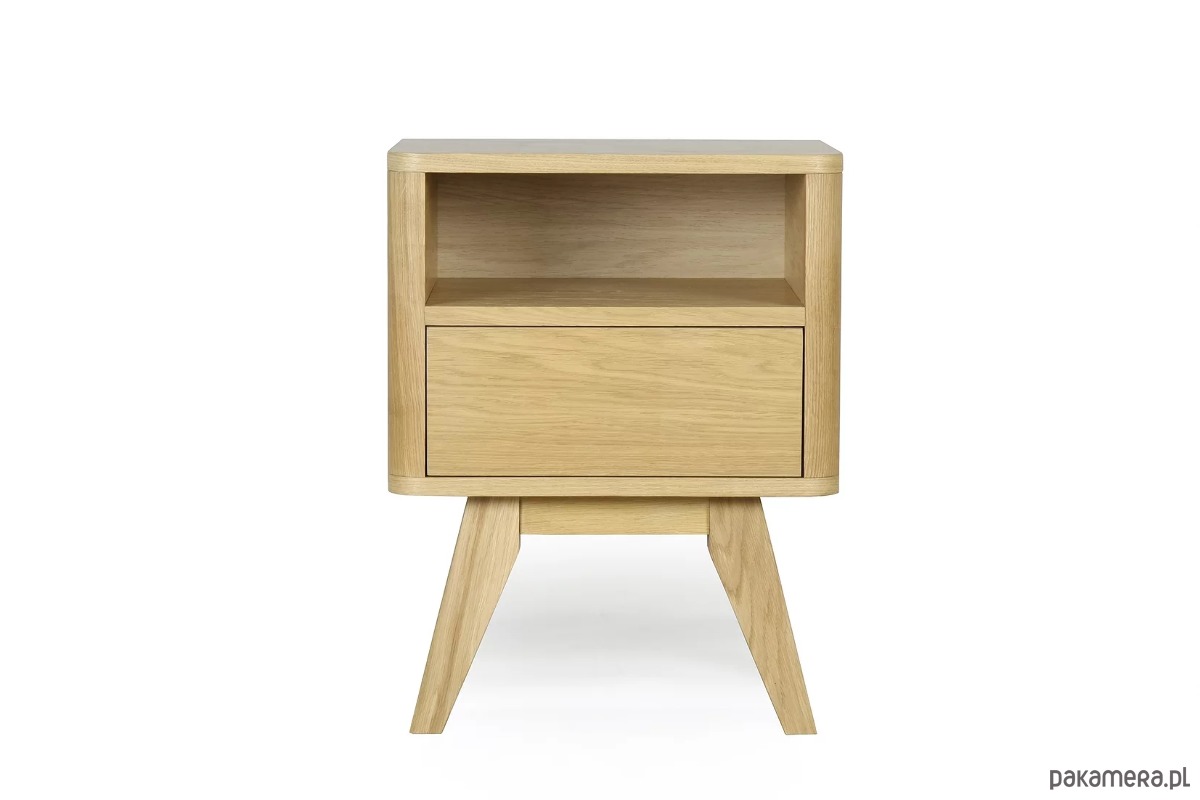 Szafka Nocna pomieści to co w sypialni powinno zostać niewidoczne. Szuflada otwiera się przez delikatne naciśnięcie frontu, a prowadnice umożliwiają pełne wysunięcie tym samym ułatwiając dostęp do całej przechowywanej zawartości.