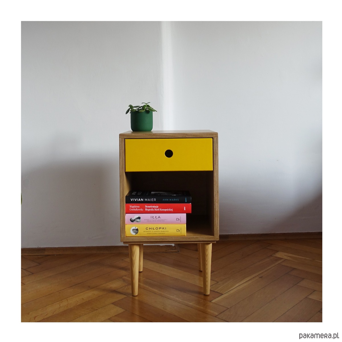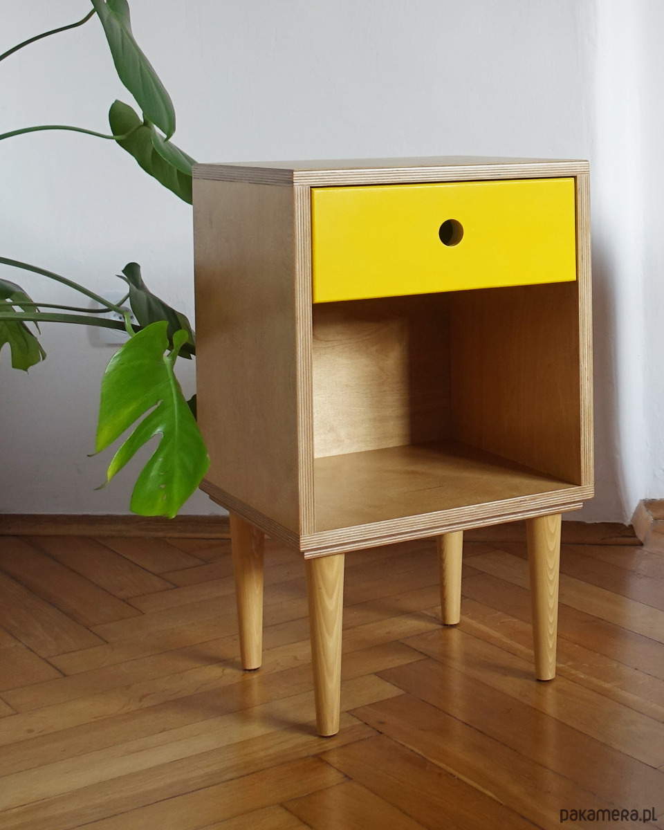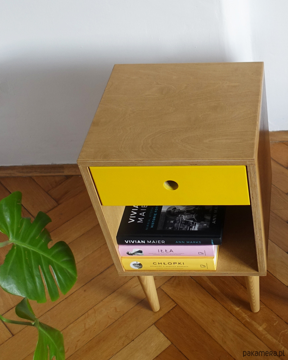 Szafka nocna Sn65 wykonana jest ze sklejki. Idealnie sprawdzi się tak w sypialni, jak i w salonie.