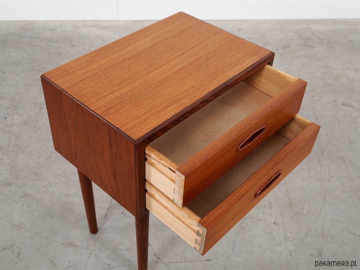 Szafka nocna tekowa, duński design, lata 70, produkcja: Dania