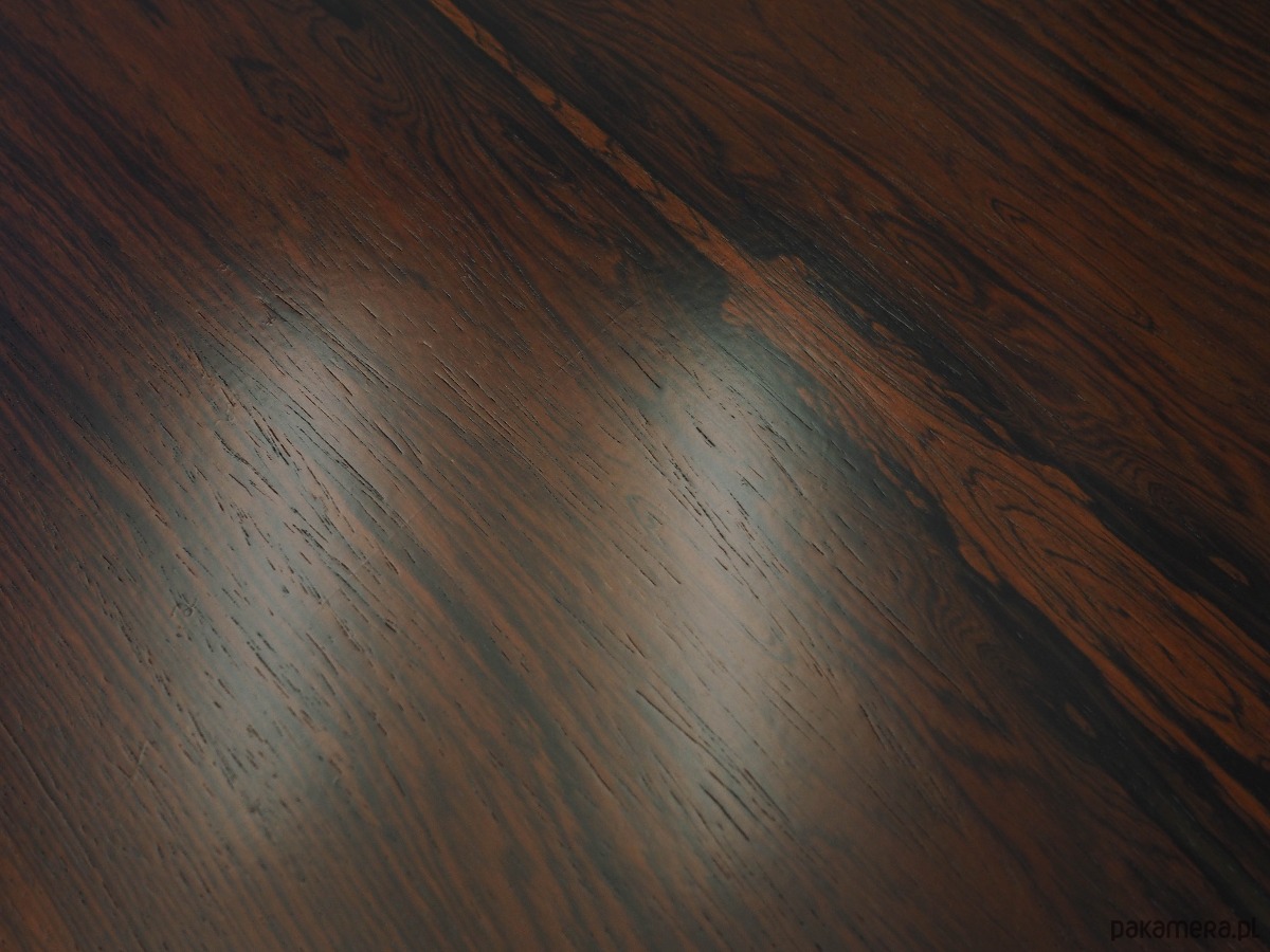 Konstrukcja pokryta jest fornirem palisandrowym. Nogi wykonane są z litego drewna. Powierzchnia po odświeżeniu. Wewnątrz przestrzeń została wypełniona praktyczną półką oraz trzema pojemnymi szufladami. Zarówno półki, jak i szuflady, posiadają możliwość regulacji wysokości. Szafka z klasycznym rozwiązaniem otwieranych drzwi, dzięki którym mamy swobodny dostęp do całego wnętrza mebla. Klucz w zestawie.