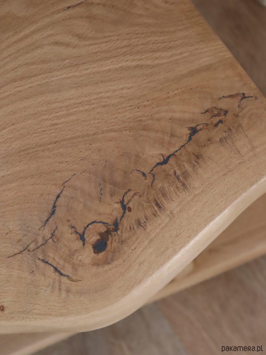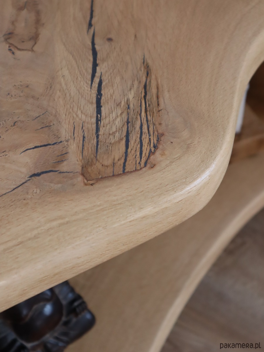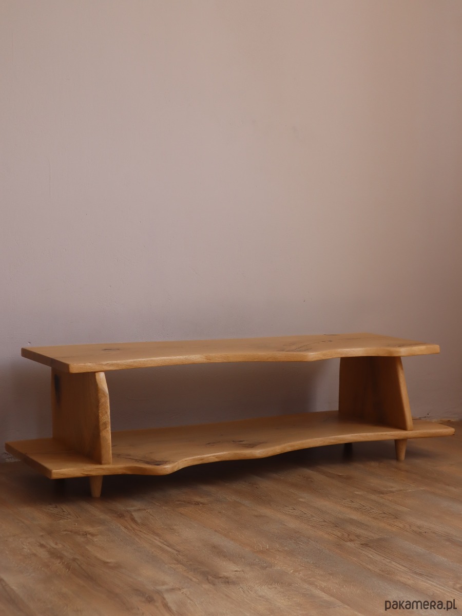 unikatowa szafka RTV, wykonana w 100% ręcznie z wyselekcjonowanego, litego drewna dębowego. To nie jest produkt z taśmy produkcyjnej – to mebel z duszą, który łączy w sobie surowość natury z nowoczesnym designem.