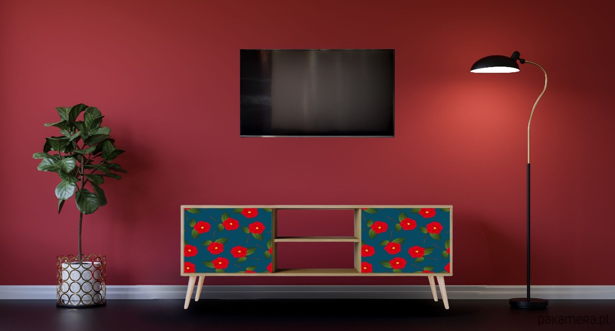 Szafka RTV w tylu skandynawskim boho kolorowa