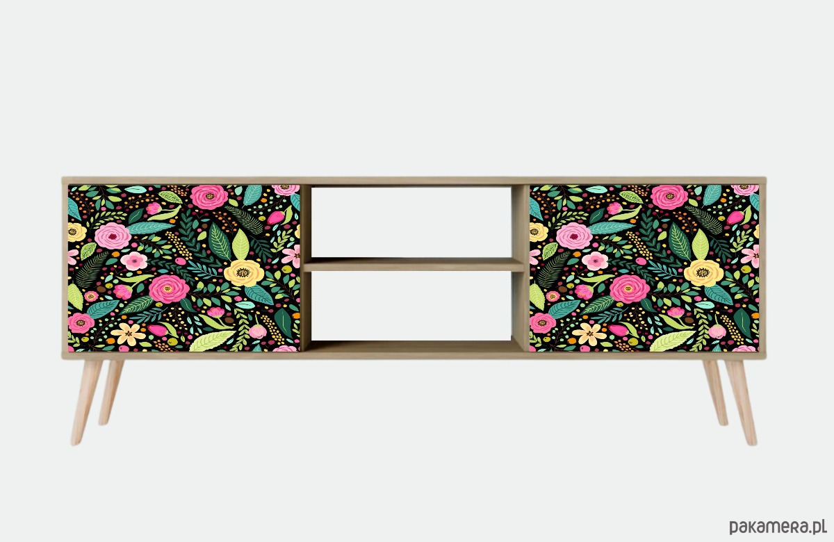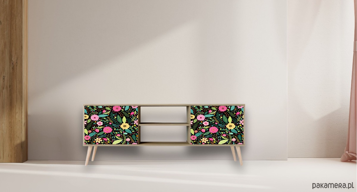 Szafka RTV w tylu skandynawskim boho kolorowa