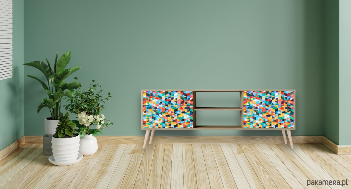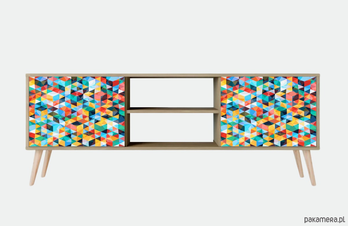 Szafka RTV w tylu skandynawskim boho kolorowa