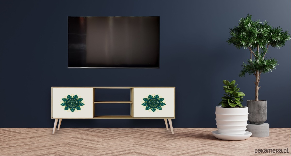 Szafka RTV w tylu skandynawskim boho kolorowa