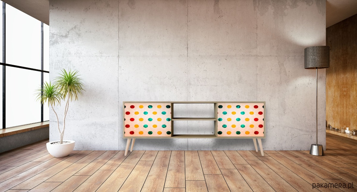 Szafka RTV w tylu skandynawskim boho kolorowa