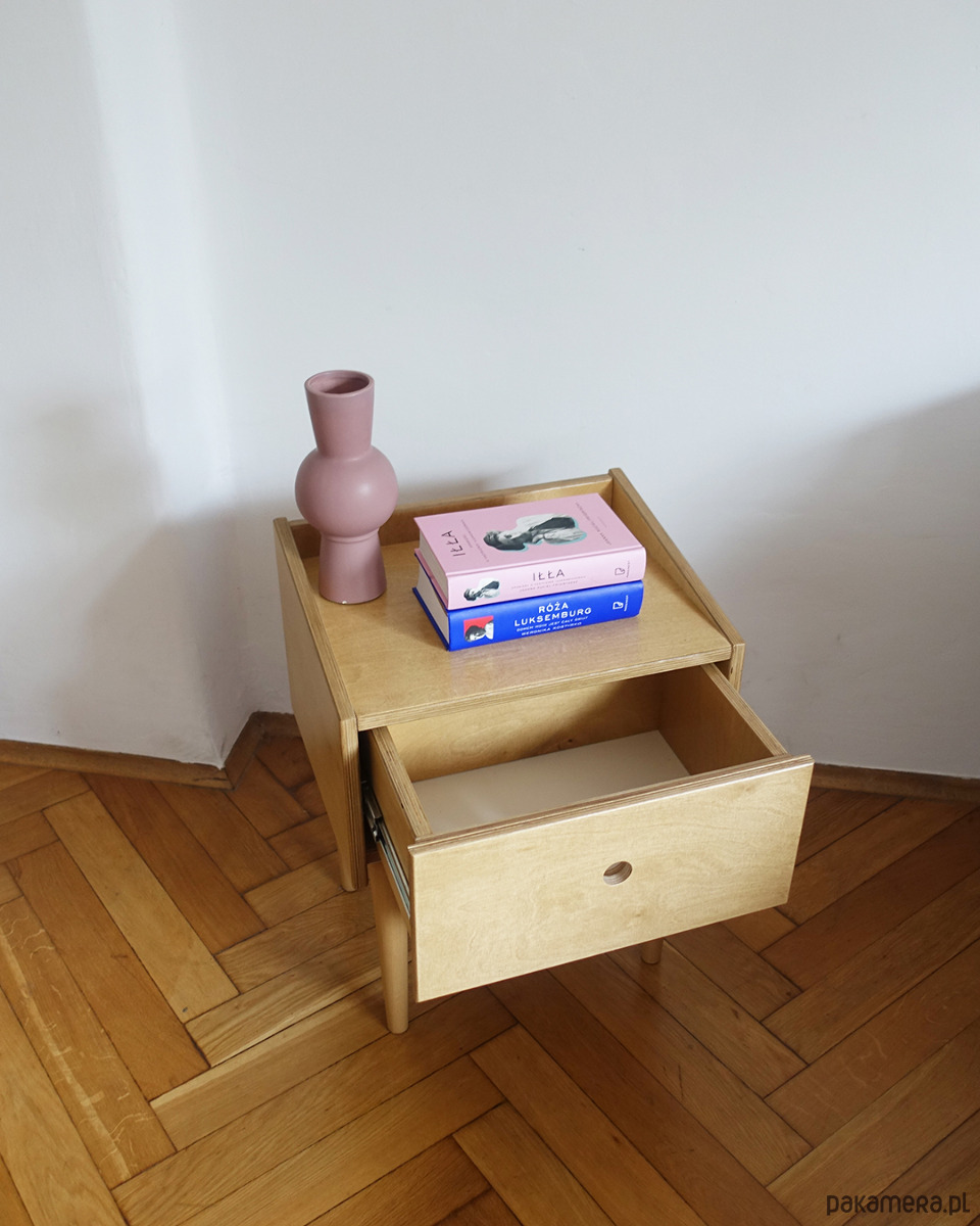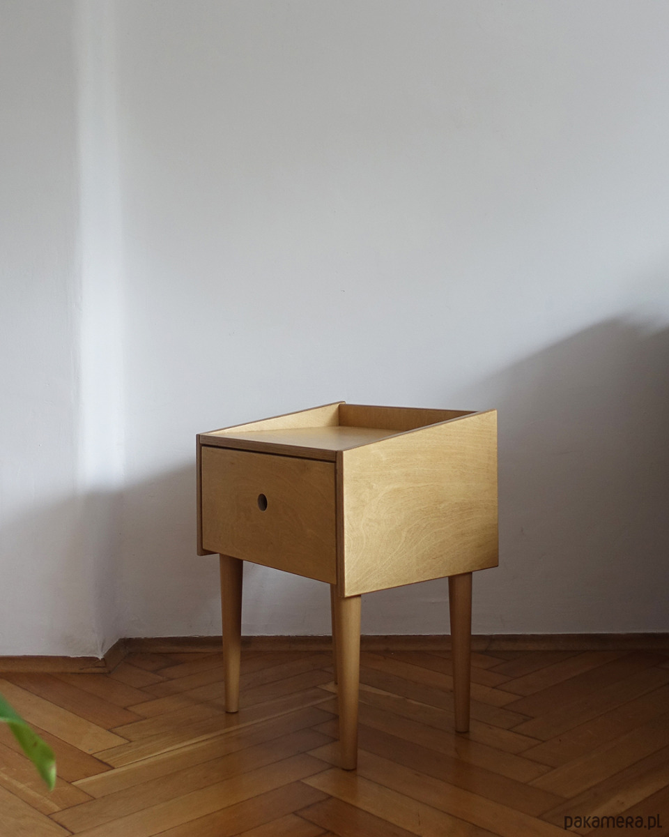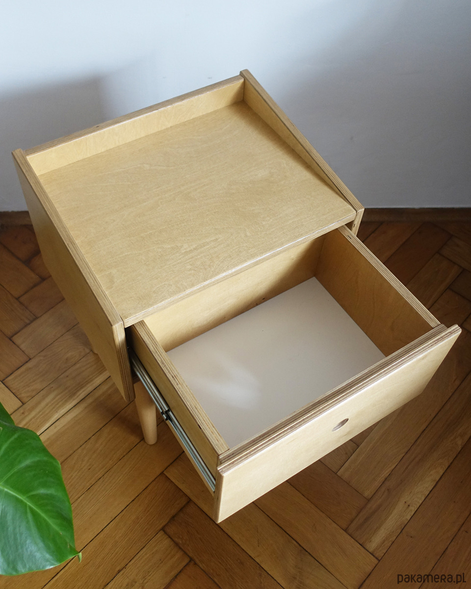 Szafka nocna Sn110_B wykonana jest ze sklejki. Idealnie sprawdzi się tak w sypialni, jak i w salonie.