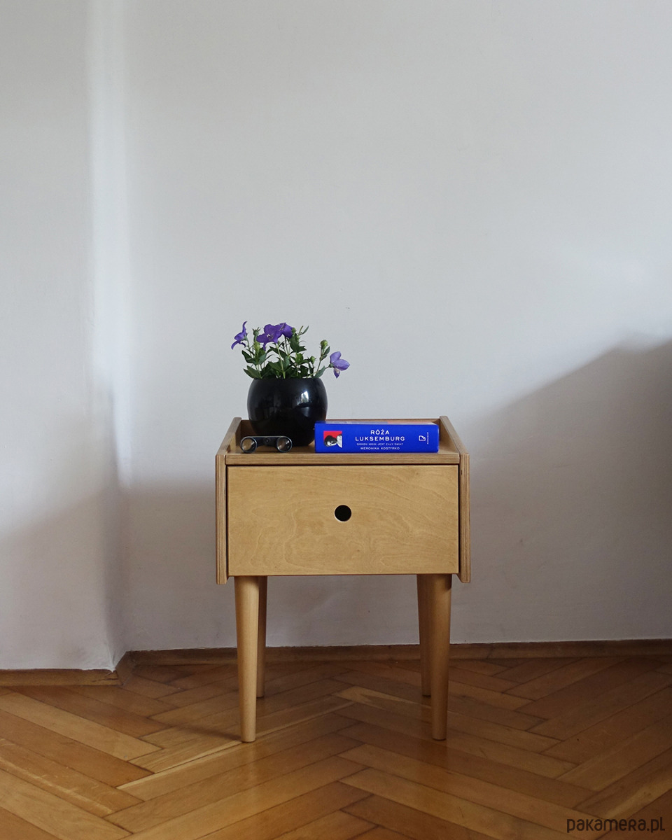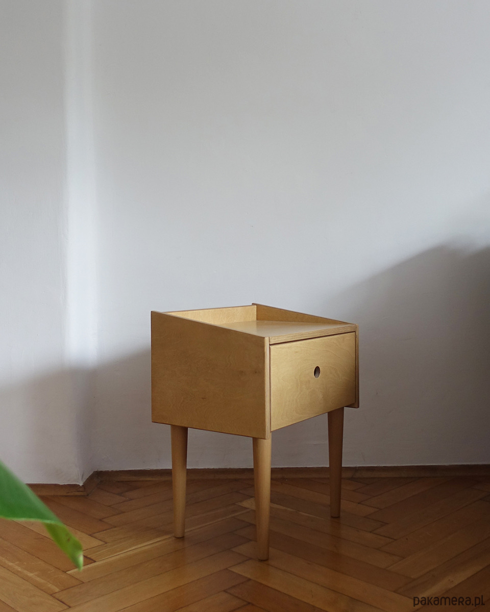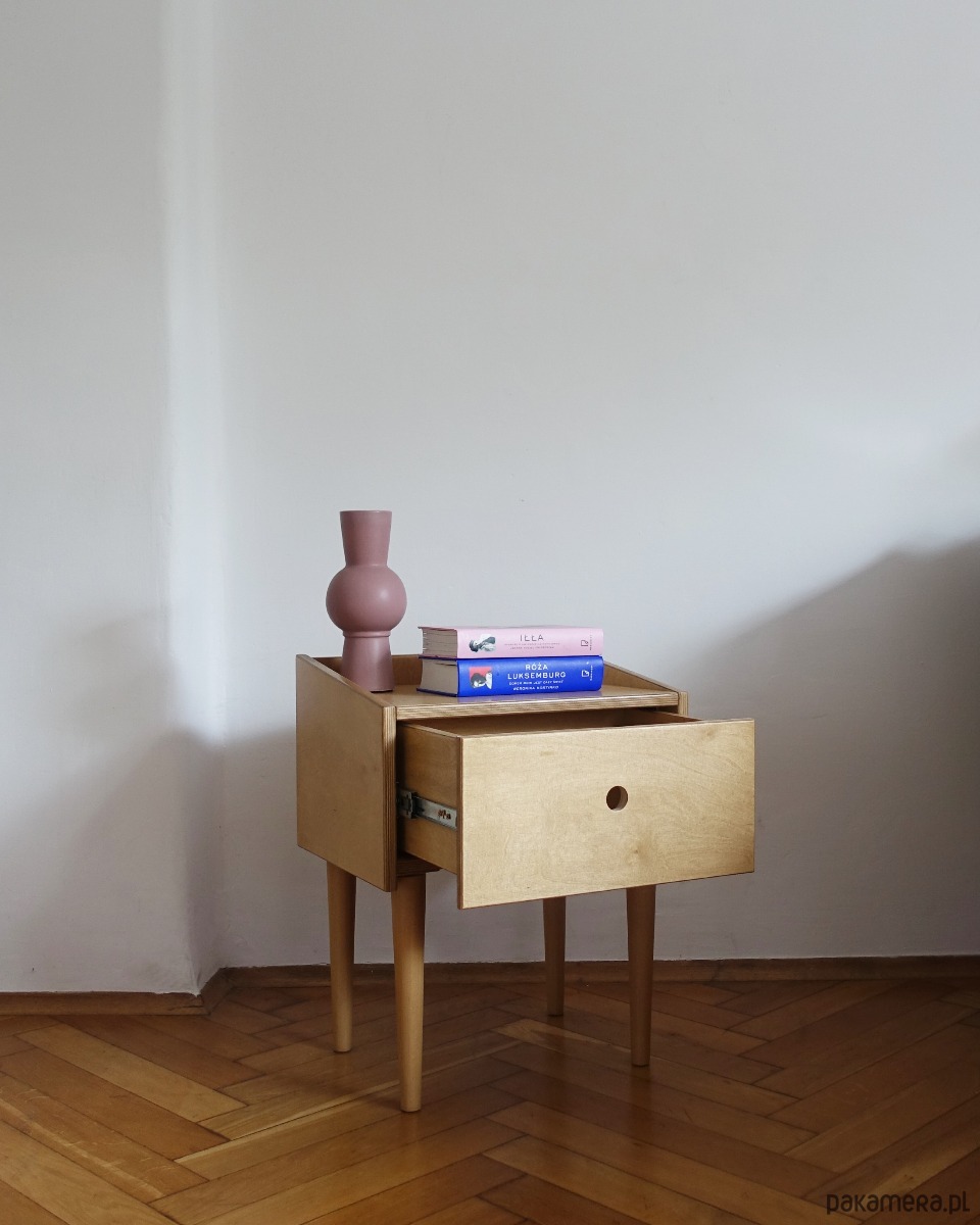 Szafka nocna Sn110_B wykonana jest ze sklejki. Idealnie sprawdzi się tak w sypialni, jak i w salonie.
