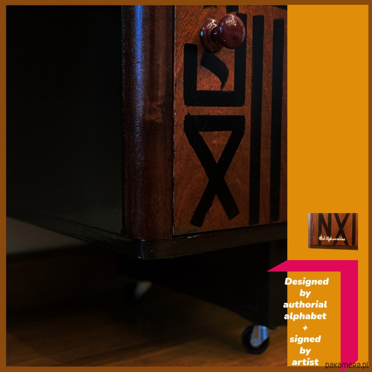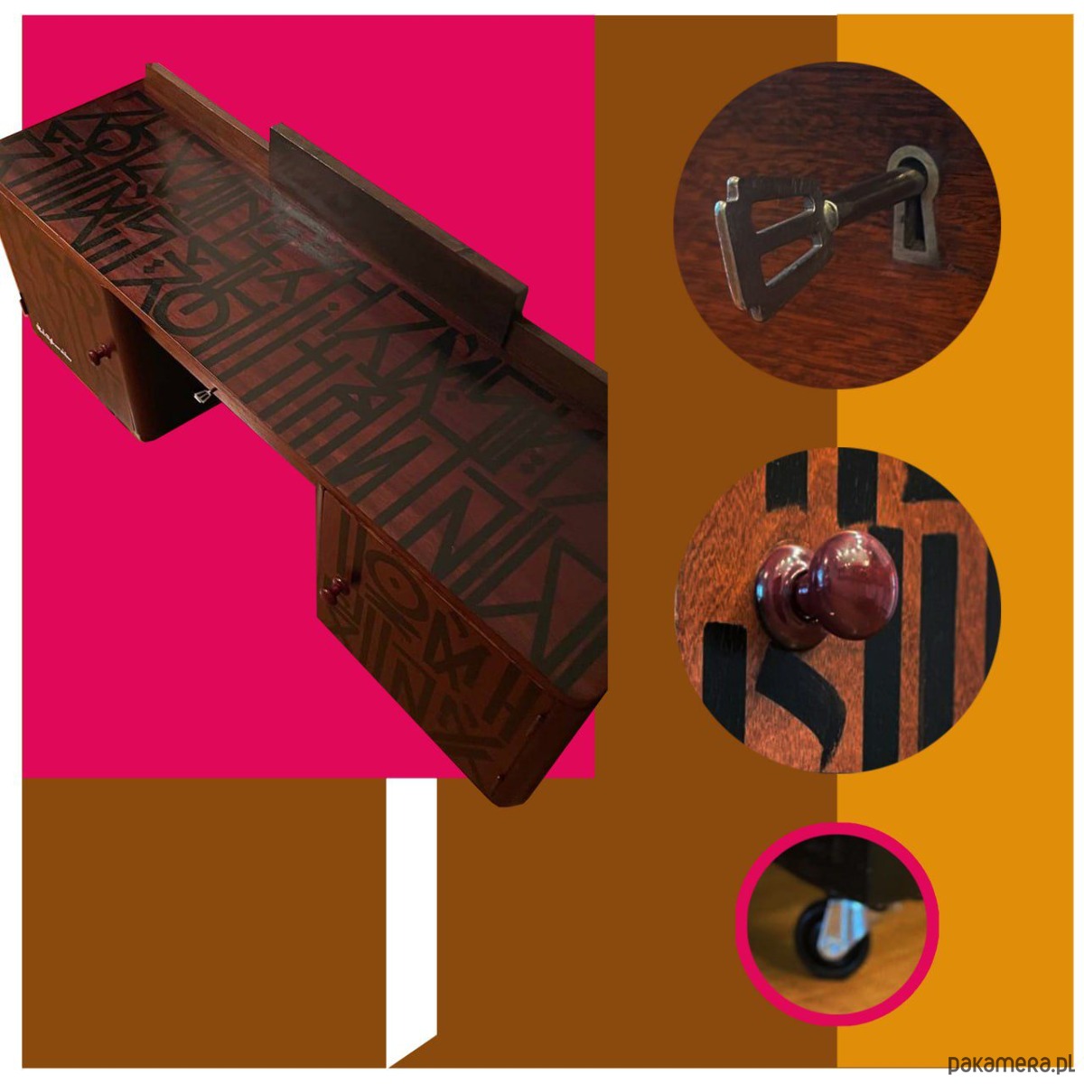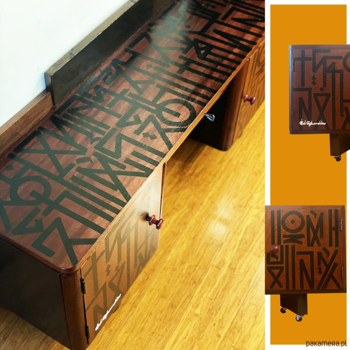 Ten obiekt to odrestaurowana, drewniana szafka licząca około 70 lat, przekształcona w funkcjonalne dzieło sztuki.