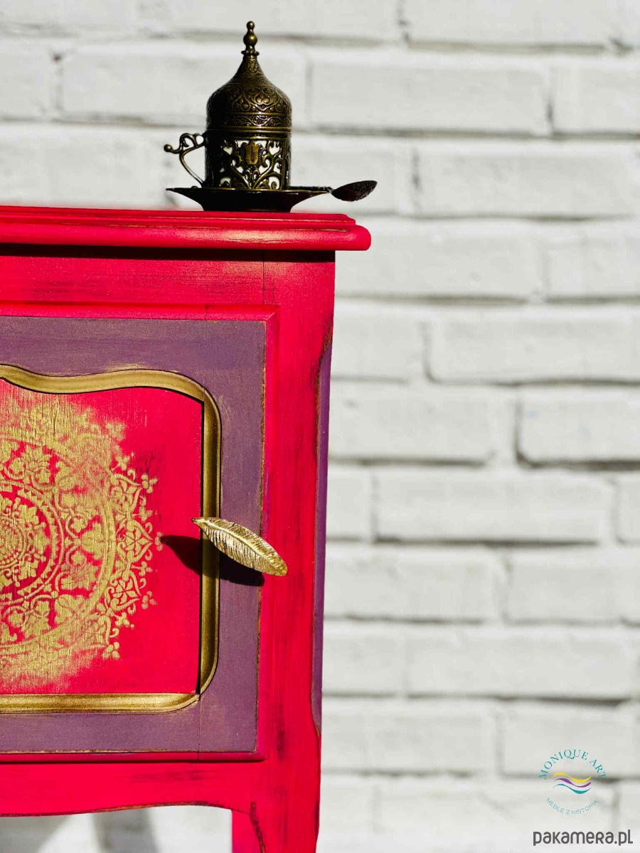 Drewniana szafka przygotowana na zamówienie dla Miłośniczki energetycznych kolorów. Motyw przewodni - mandala.