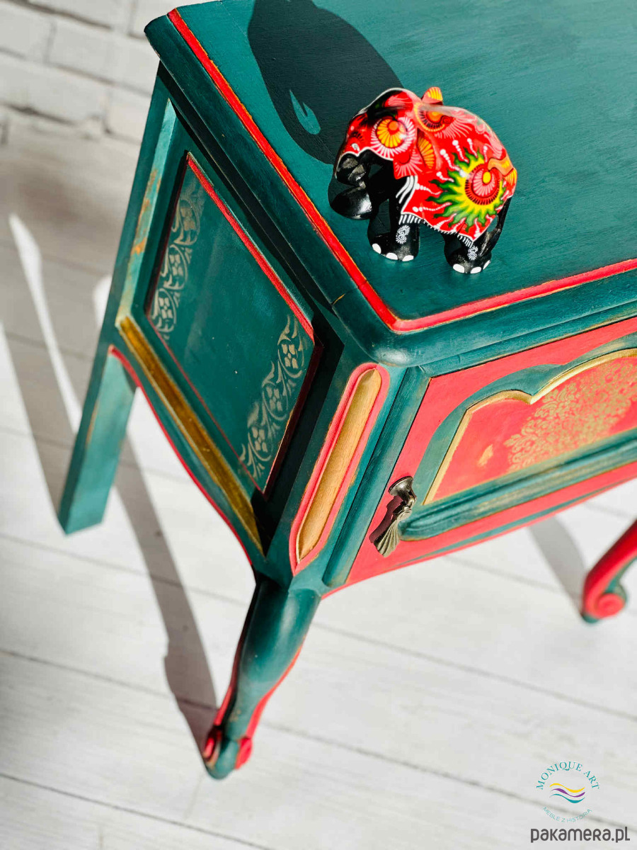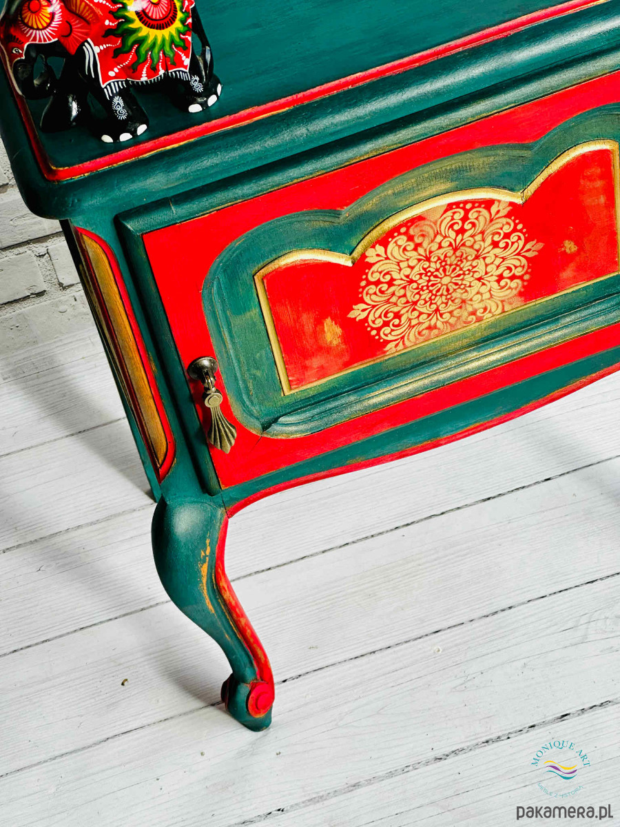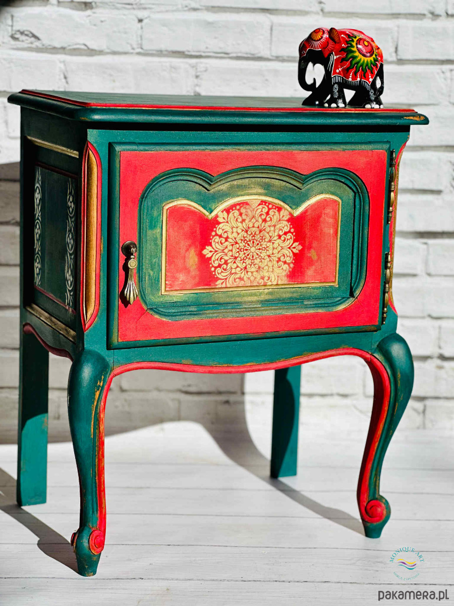 Drewniana szafka z motywem mandali, przygotowana na zamówienie Miłośniczki mebli ręcznie malowanych.