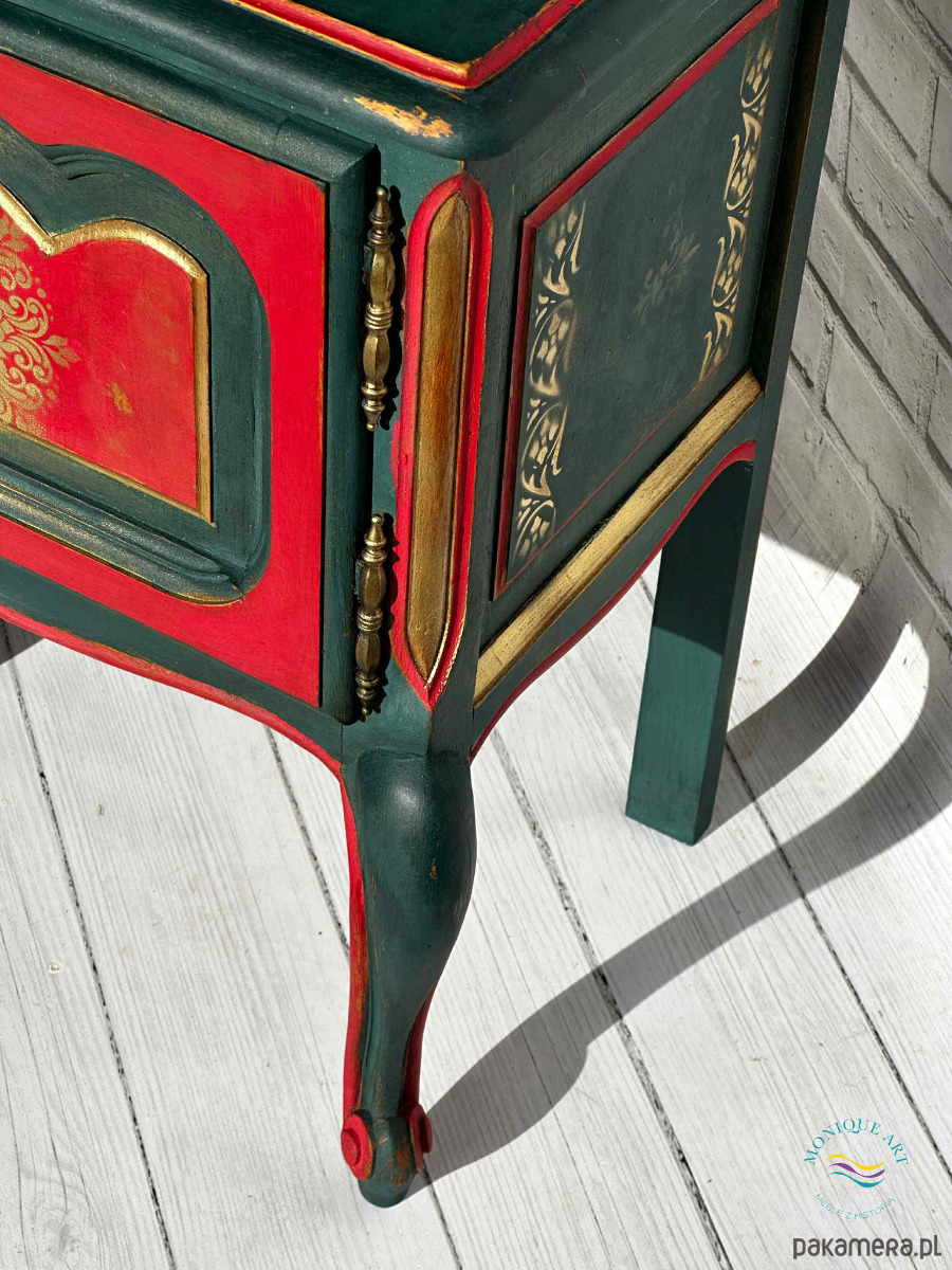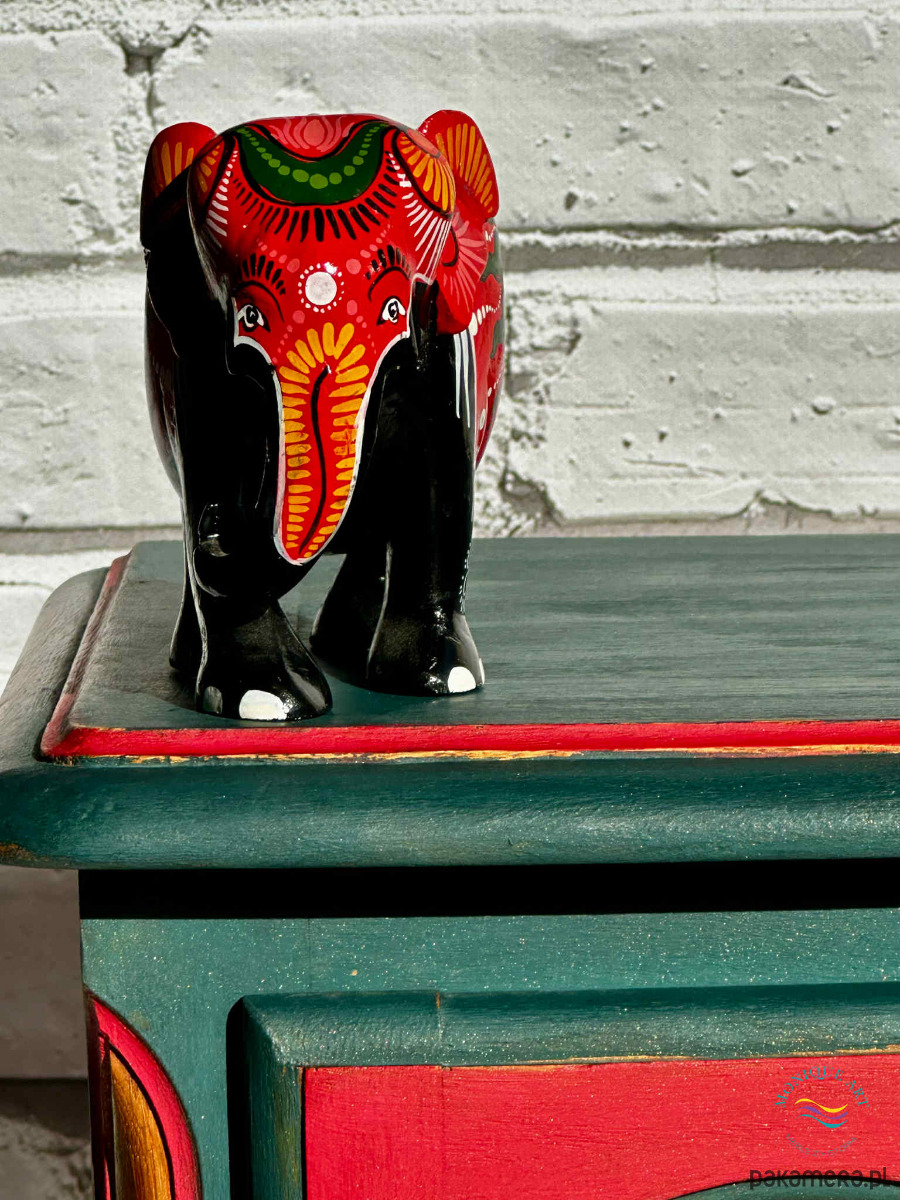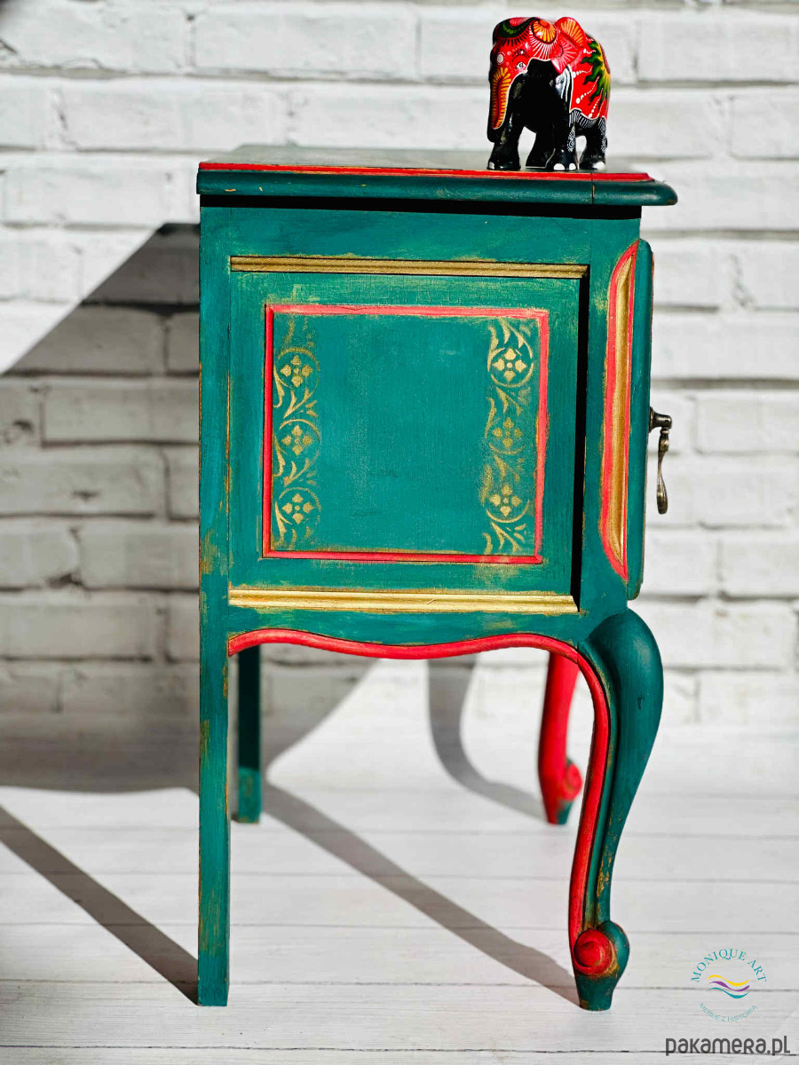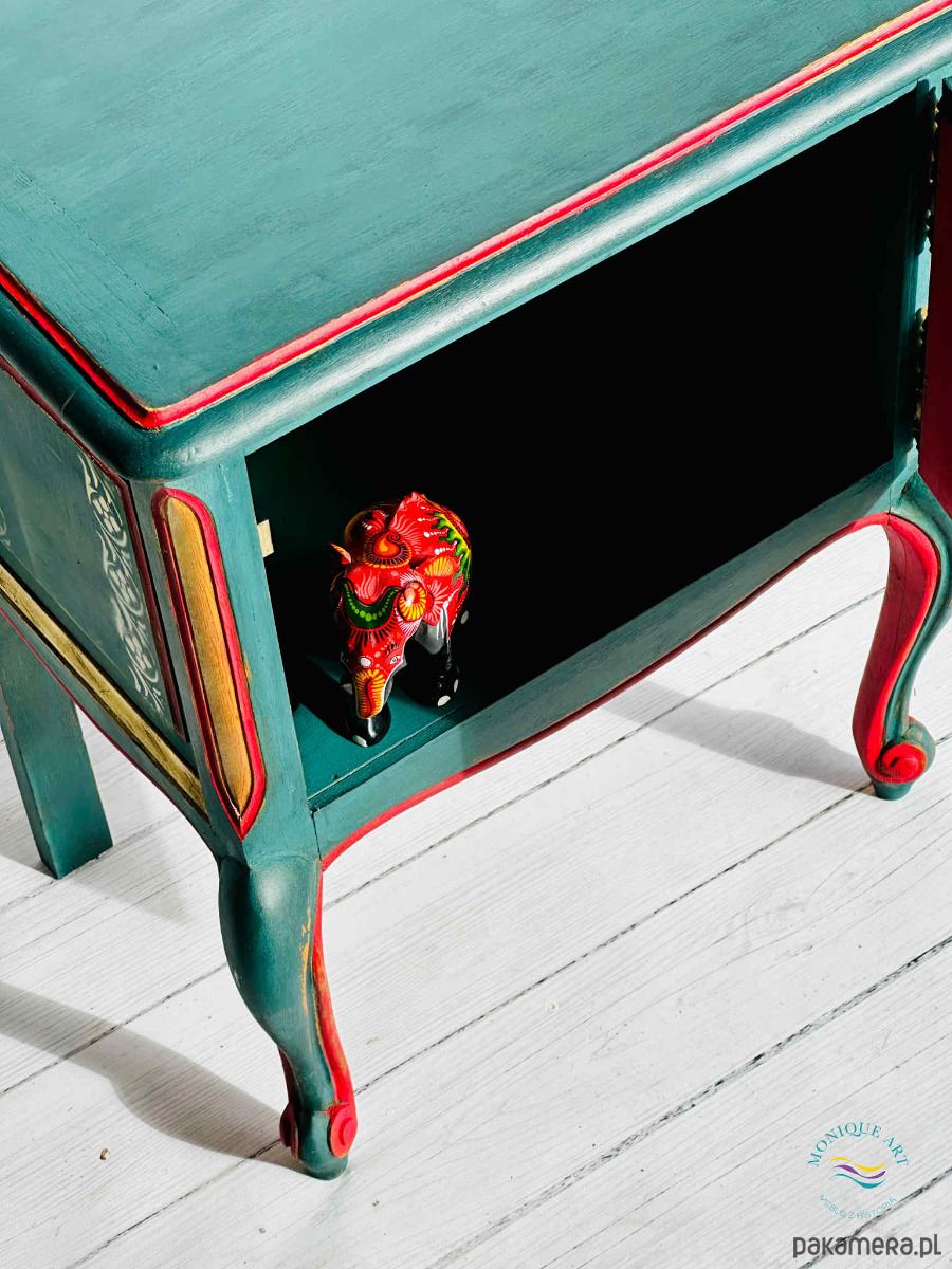 Drewniana szafka z motywem mandali, przygotowana na zamówienie Miłośniczki mebli ręcznie malowanych.