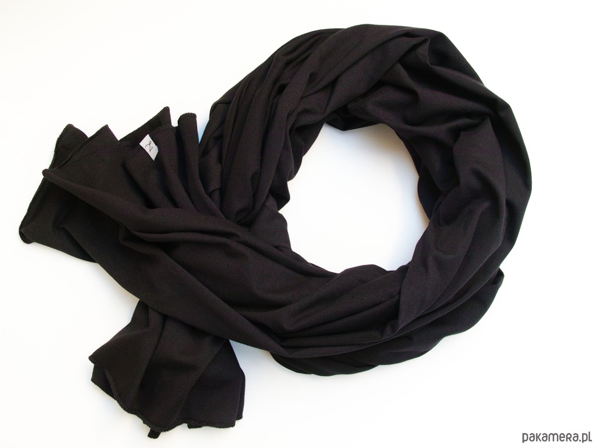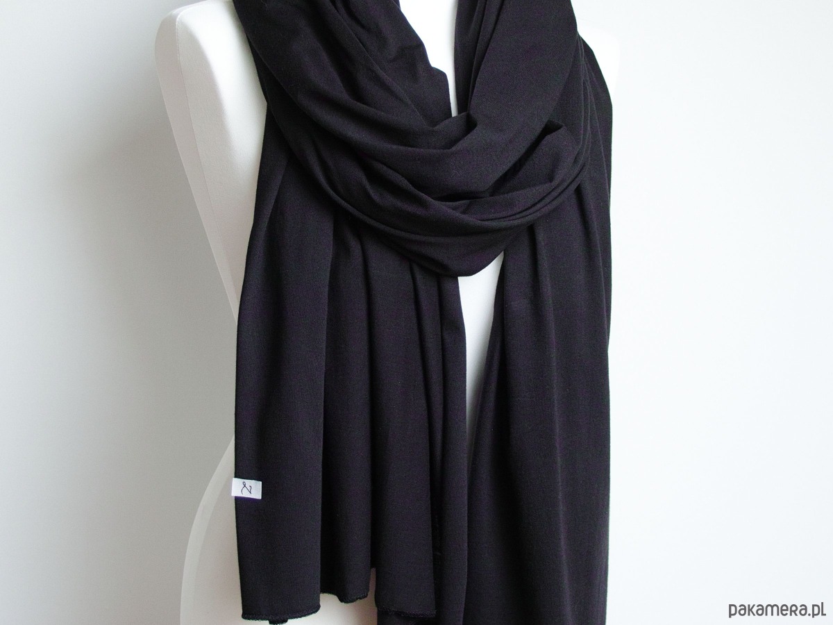 Ten długi, czarny szal bawełniany to klasyczny, a zarazem nowoczesny dodatek do każdej stylizacji. Uszyty z cienkiej, oddychającej dzianiny z certyfikowanej bawełny (Oeko Tex Standard), jest przyjazny dla skóry i idealny do noszenia w sezonie przejściowym – zarówno wiosną, jak i jesienią.