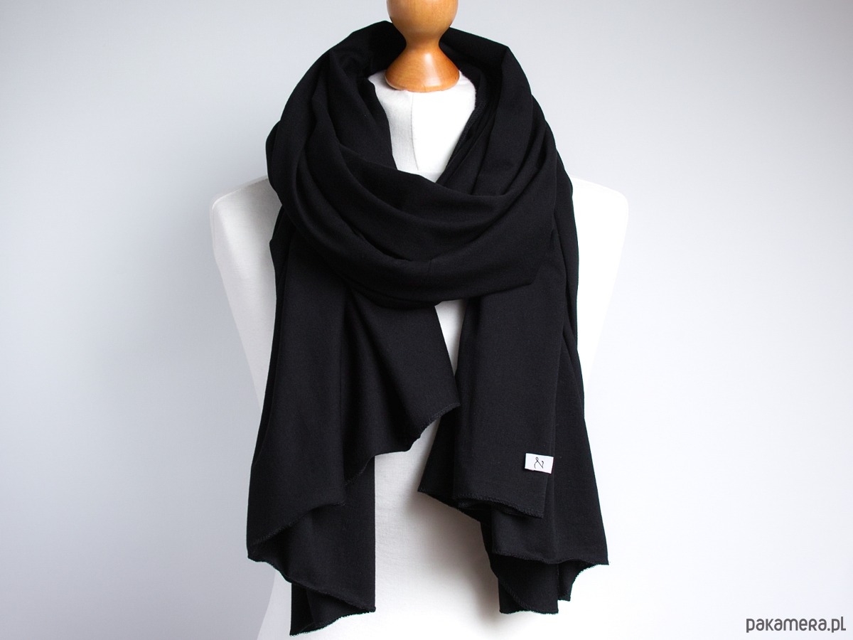 Szal bawełniany damski, duży szal szalik damski CZARNY